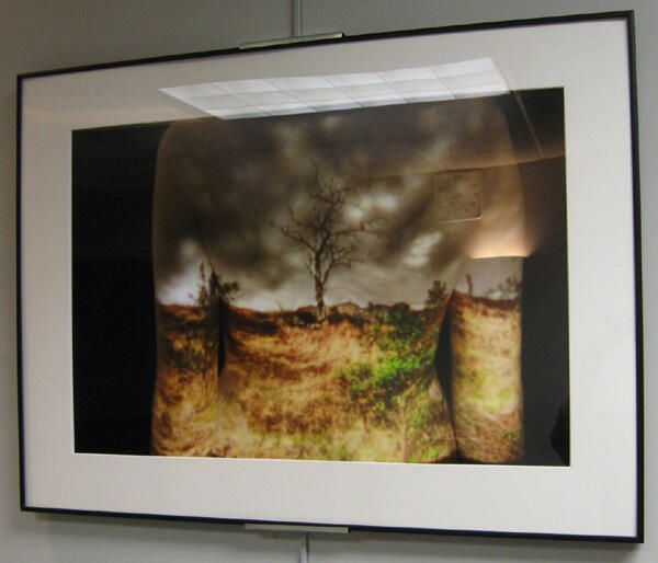 Digital Image of back with landscape projected on it by Jessica Rodgers.