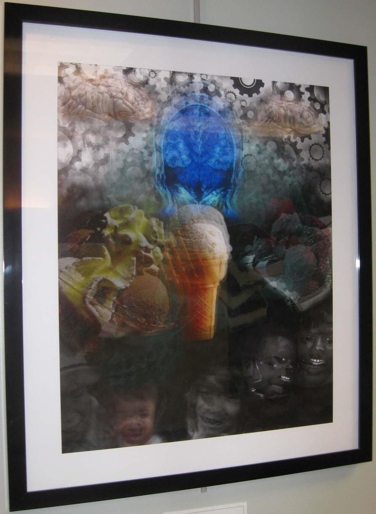 Digital image with ice cream cone and brain(?) by Josh Korapchak.