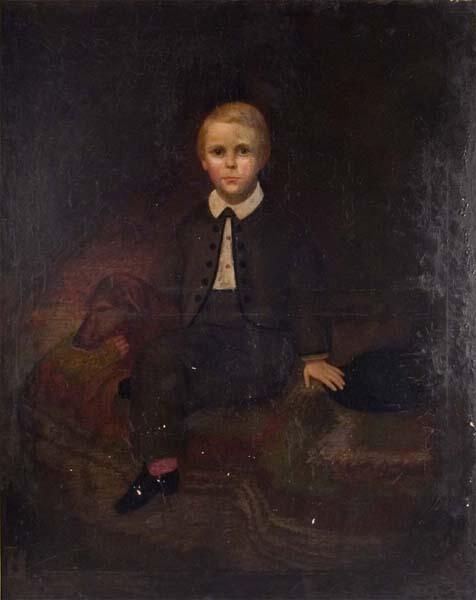 Believed to be Benjamin Gratz as a boy. Subject is sitting on a bench with a dog, probably a dacshund. Benjamin Gratz (1792-1884) was a board member of Transylvania and Gratz Park is named for him. The painting was gifted to the university in 1995 by Mrs R Warfield Gratz.Artwork Details