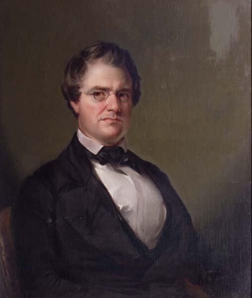 Portrait of Dr. James Miles Bush by Joseph Bush. James Bush lived 1808-1875 and was professor of anatomy and surgery. He was the artist’s brother. A portrait of his wife and child hangs can also be seen in this database. Nannie Massie Bush (1836-1916), Benjamin Dudley Bush (1839-1873), and Thomas James Bush (1840-1920) were his children. In this portrait he is slightly older and wears glasses.Collection