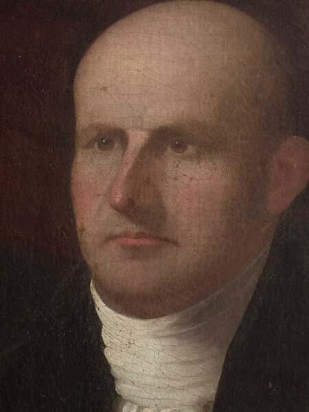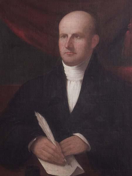 Portrait of Horace Holley with quill by Jouett. In this portrait he looks older, balding, and has a white feather quill in his right hand. Holley was president of Transylvania from 1818-1827. We have another portrait of Holley as a younger man.Collection