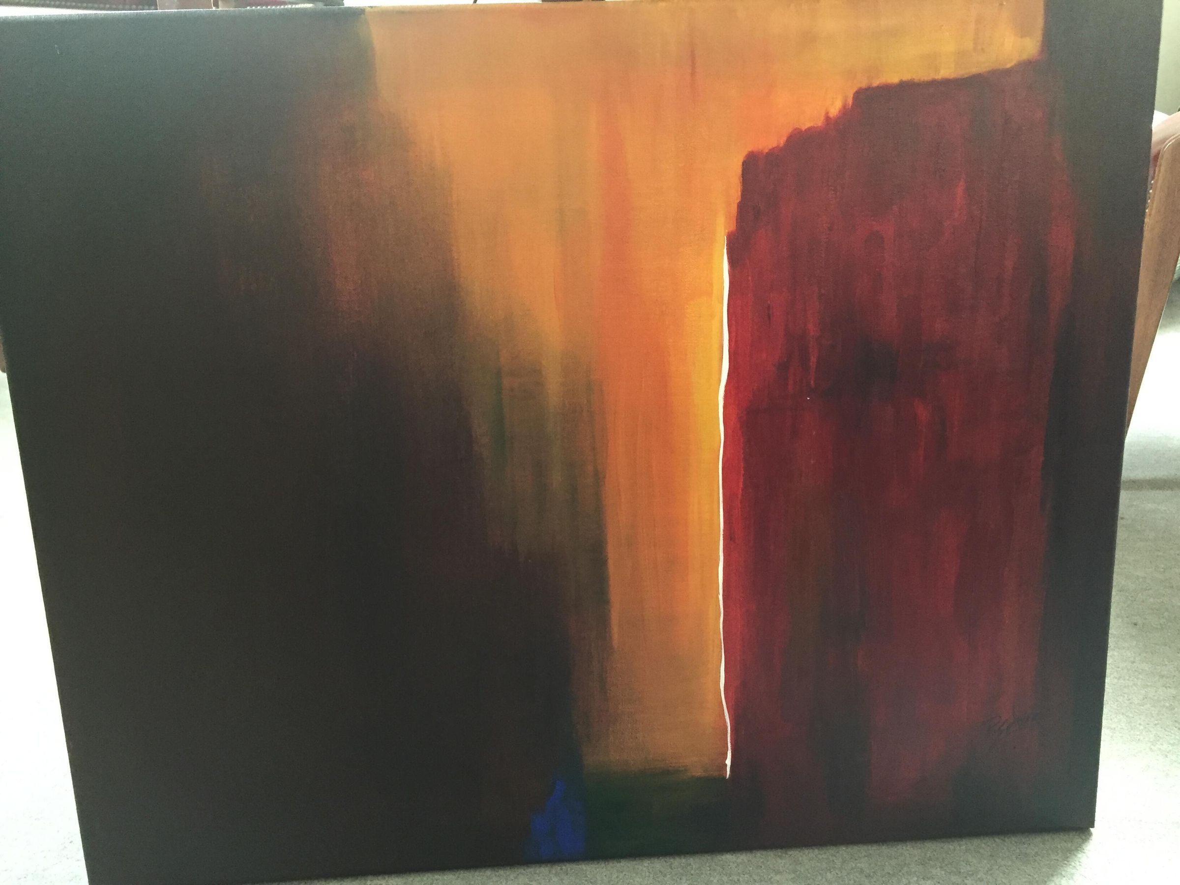 Abstract of the cliffs in reds and yellow. Artist Peg Edwards graduated from Transylvania in 1977.Artwork Details