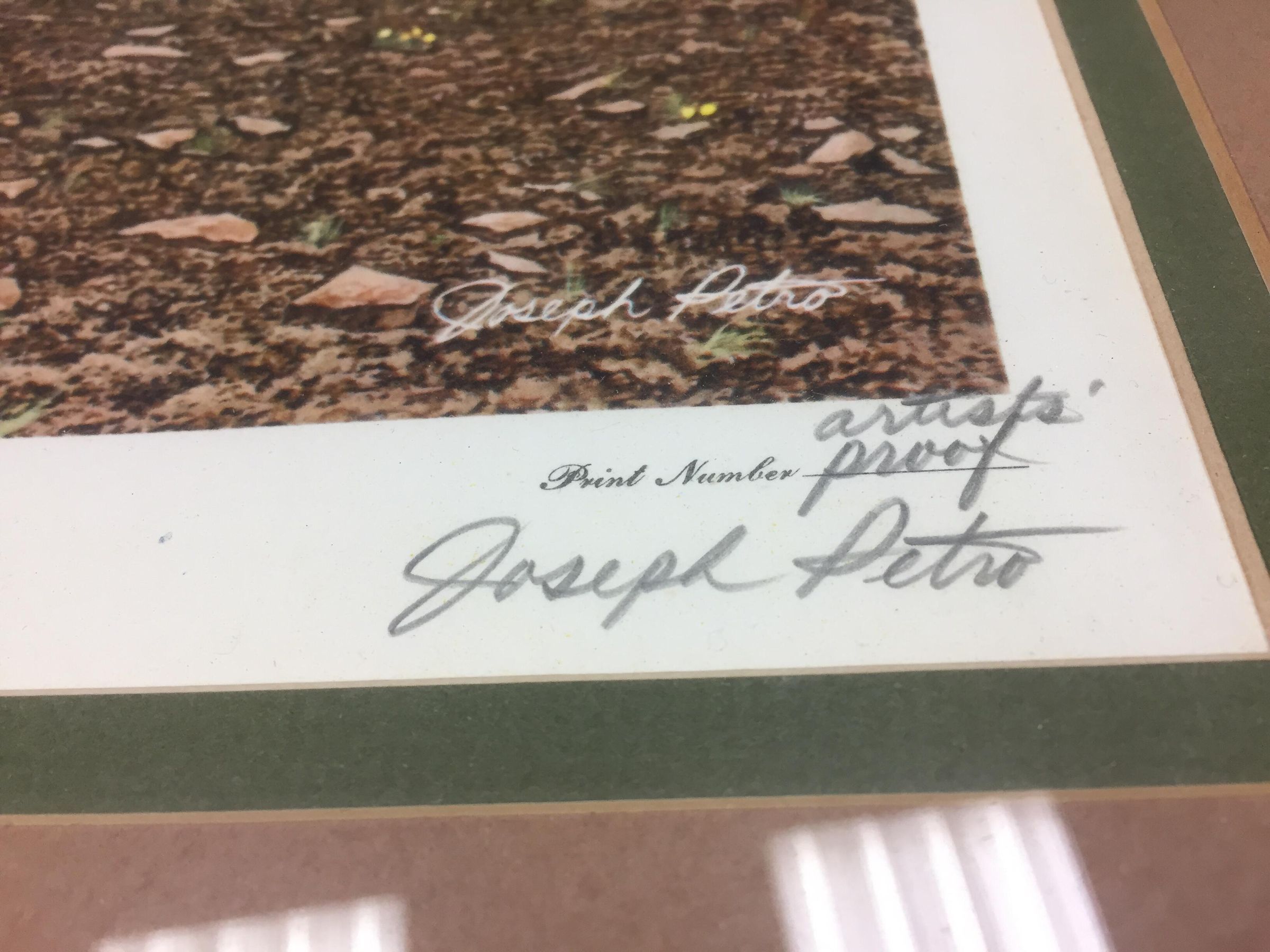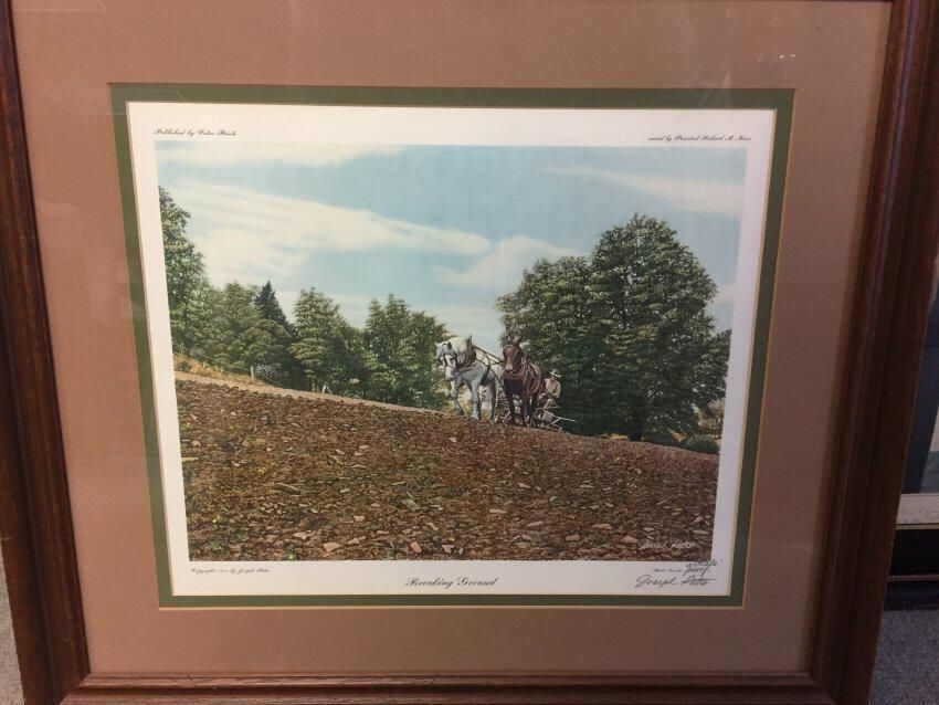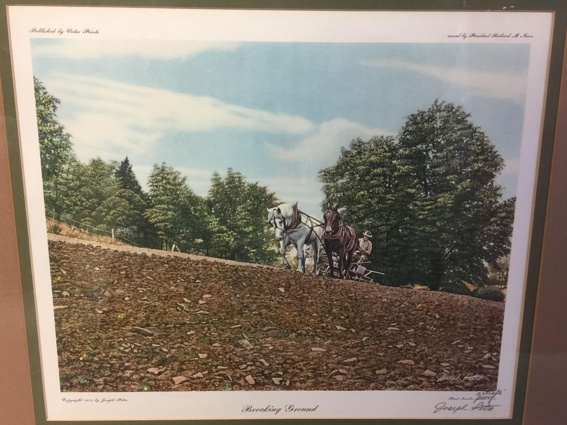 Artist Proof of a print copy of artwork depicting two draft horses plowing a field by Joe Petro. Signed by the artist.Collection