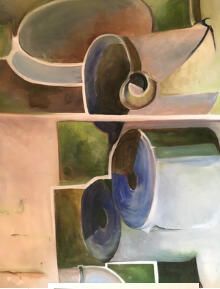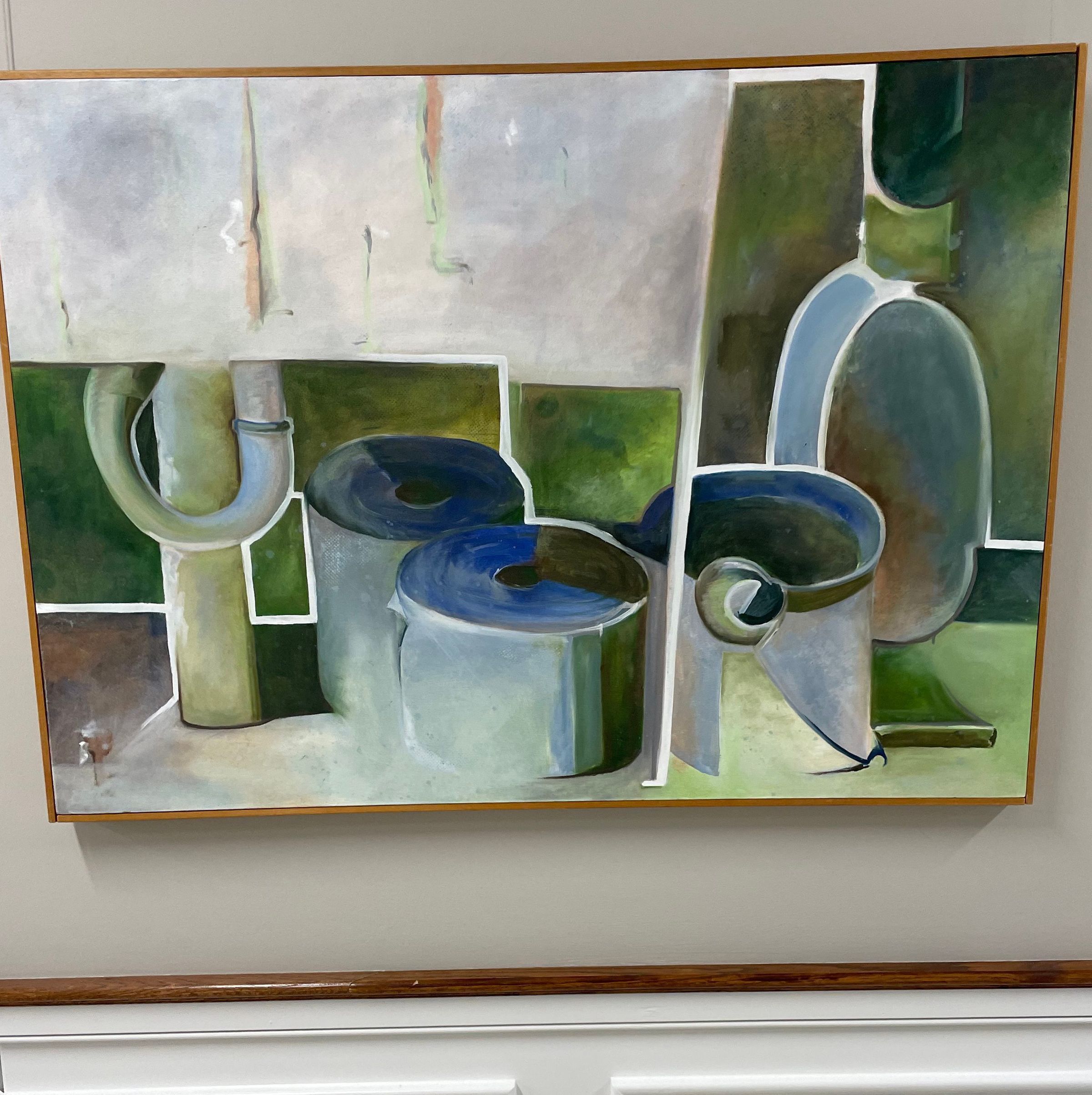 Abstract painting in blues, taupes, greens. Artist was a Transylvania student.Artwork Details