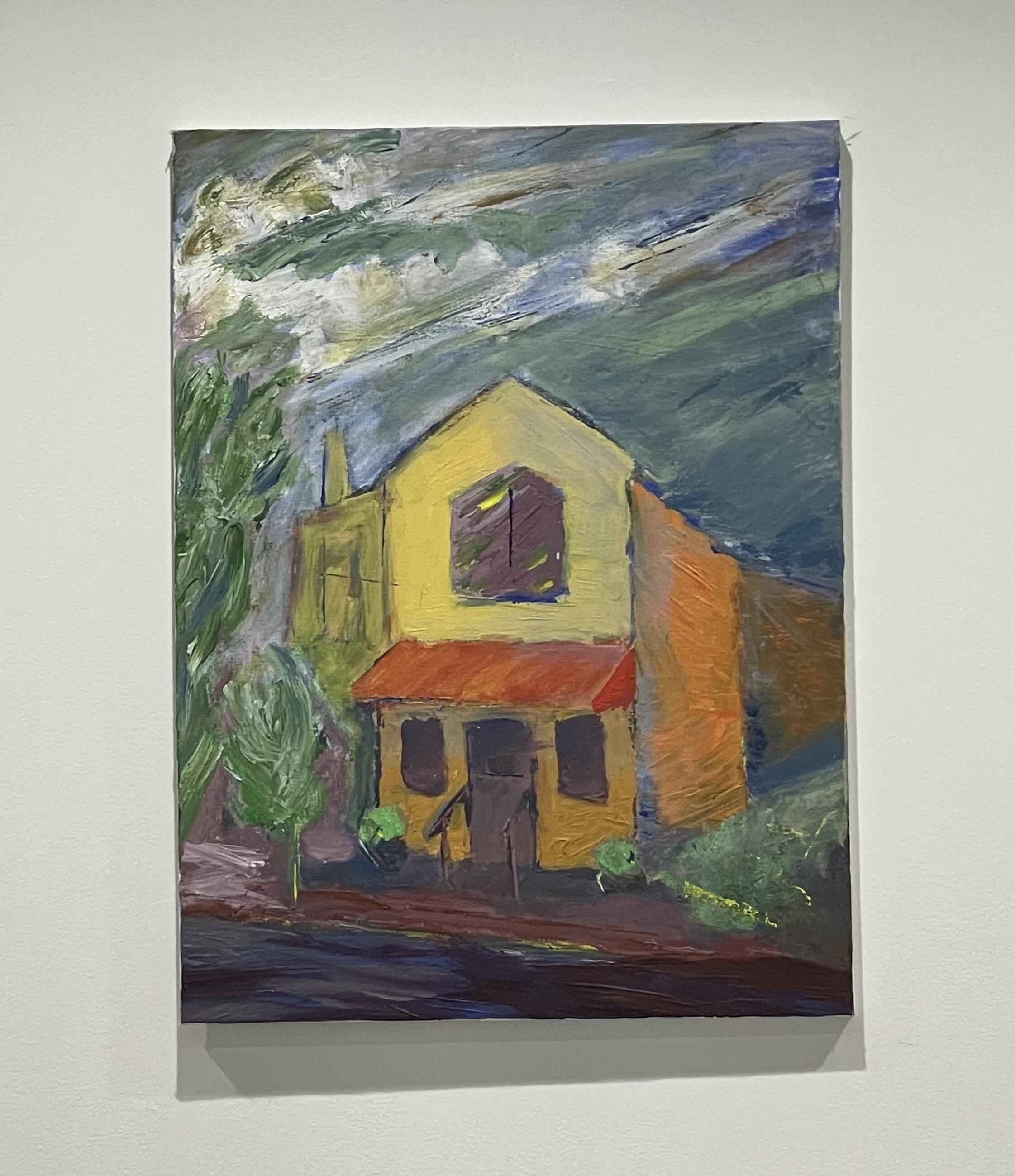 Colorful painting of a little building. Stella's is a restaurant on Jefferson in Lexington KY.Artwork Details