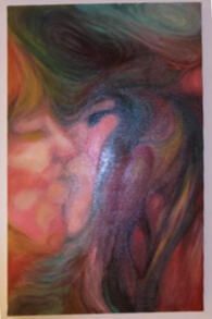 Swirling portrait of a couple kissing.