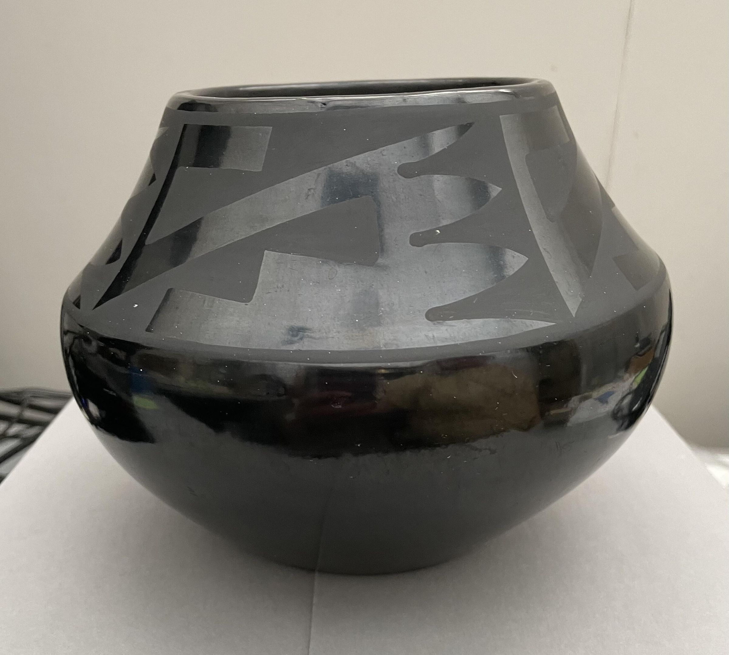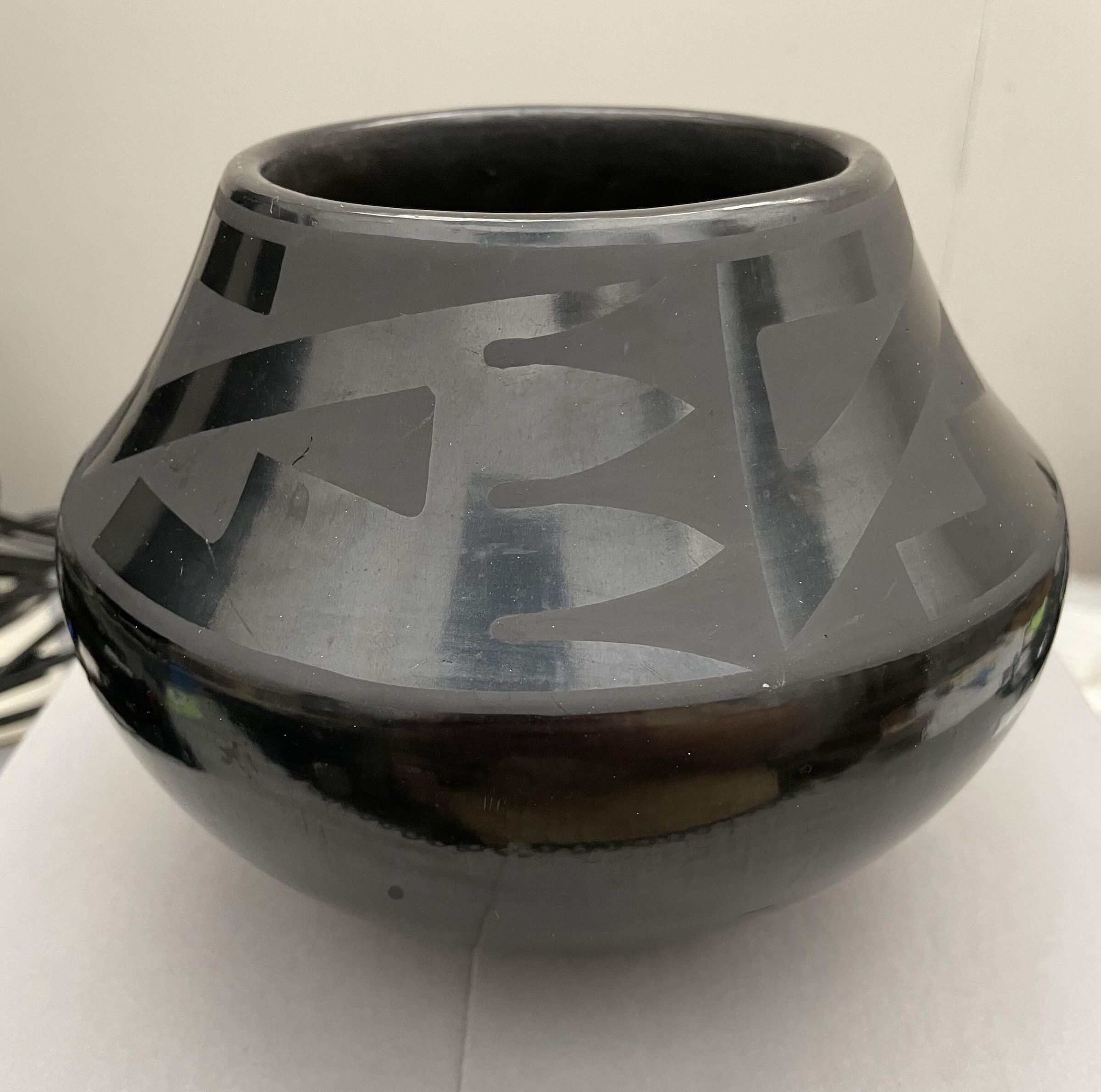 Black-on-black pottery jar; possibly San Ildefonso Pueblo.Collection