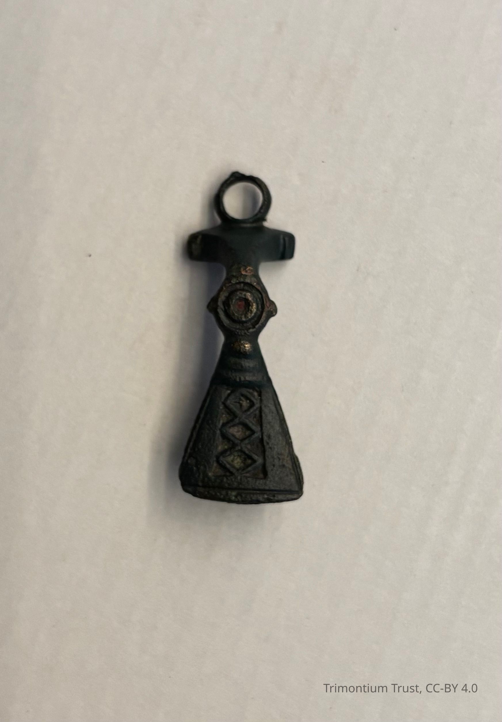Bow and fantail brooch with geometric patterns. Missing pin.