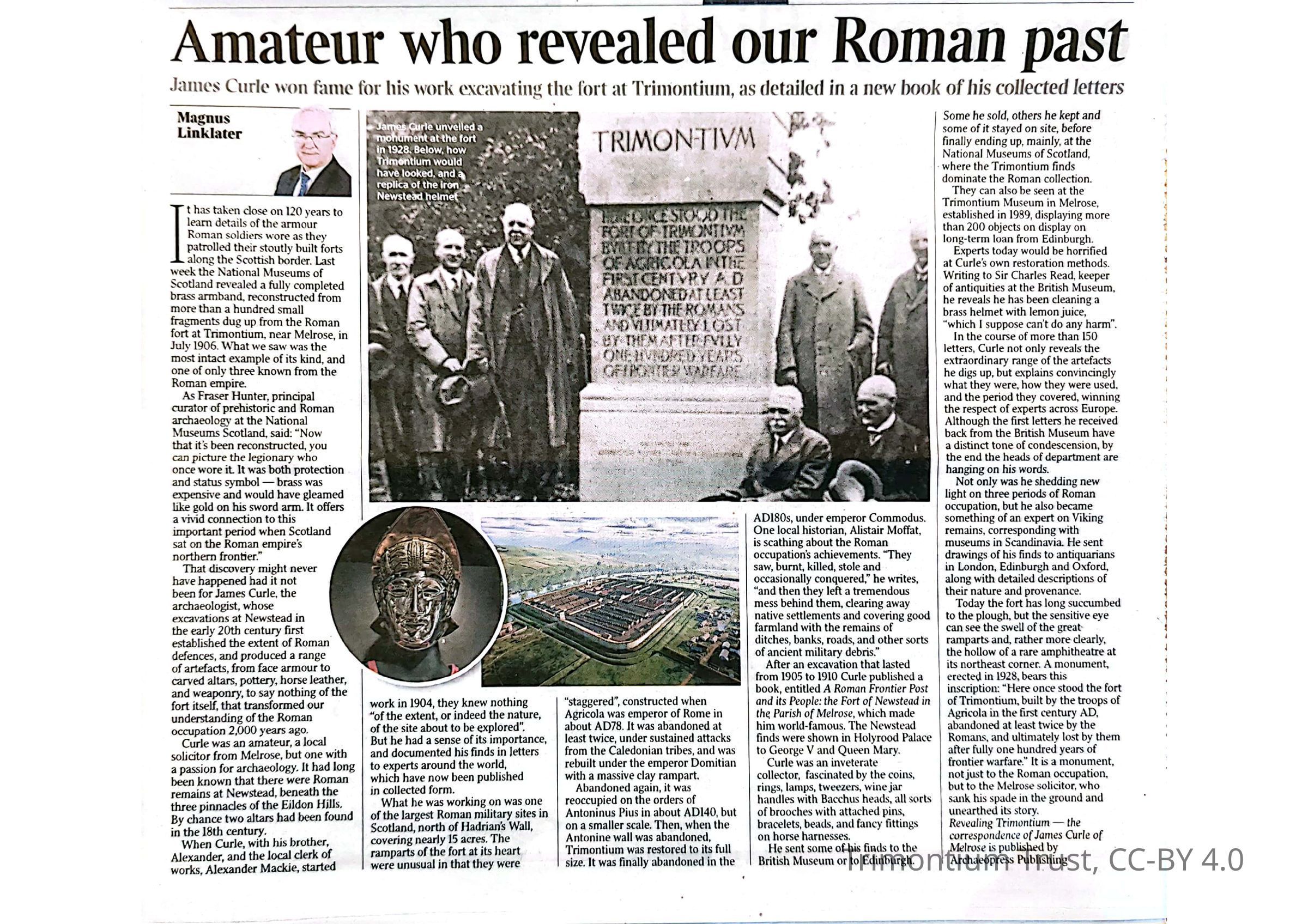 James Curle won fame for his work excavating the fort at Trimontium, as detailed in a new book of his collected lettersPublication Details