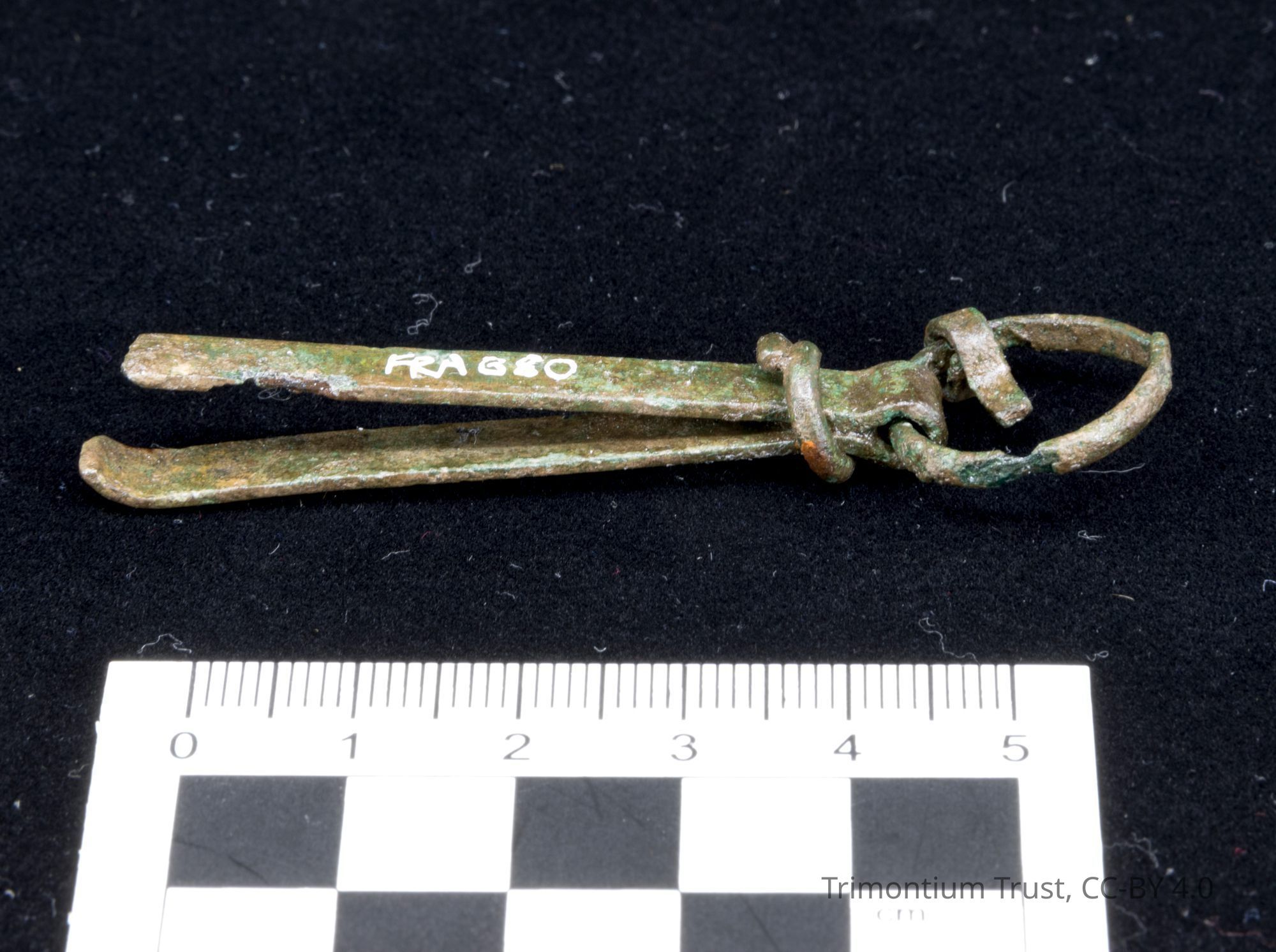 Pair of tweezers on a ring, from the Roman site at NewsteadUse