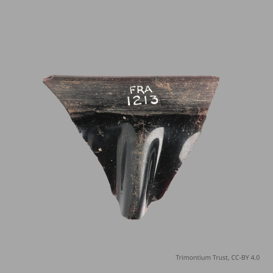 These pieces of coloured glass came from flagons, beakers and bowls for serving or presenting food and drink to the officers. They were made from colourful glass, and often decorated