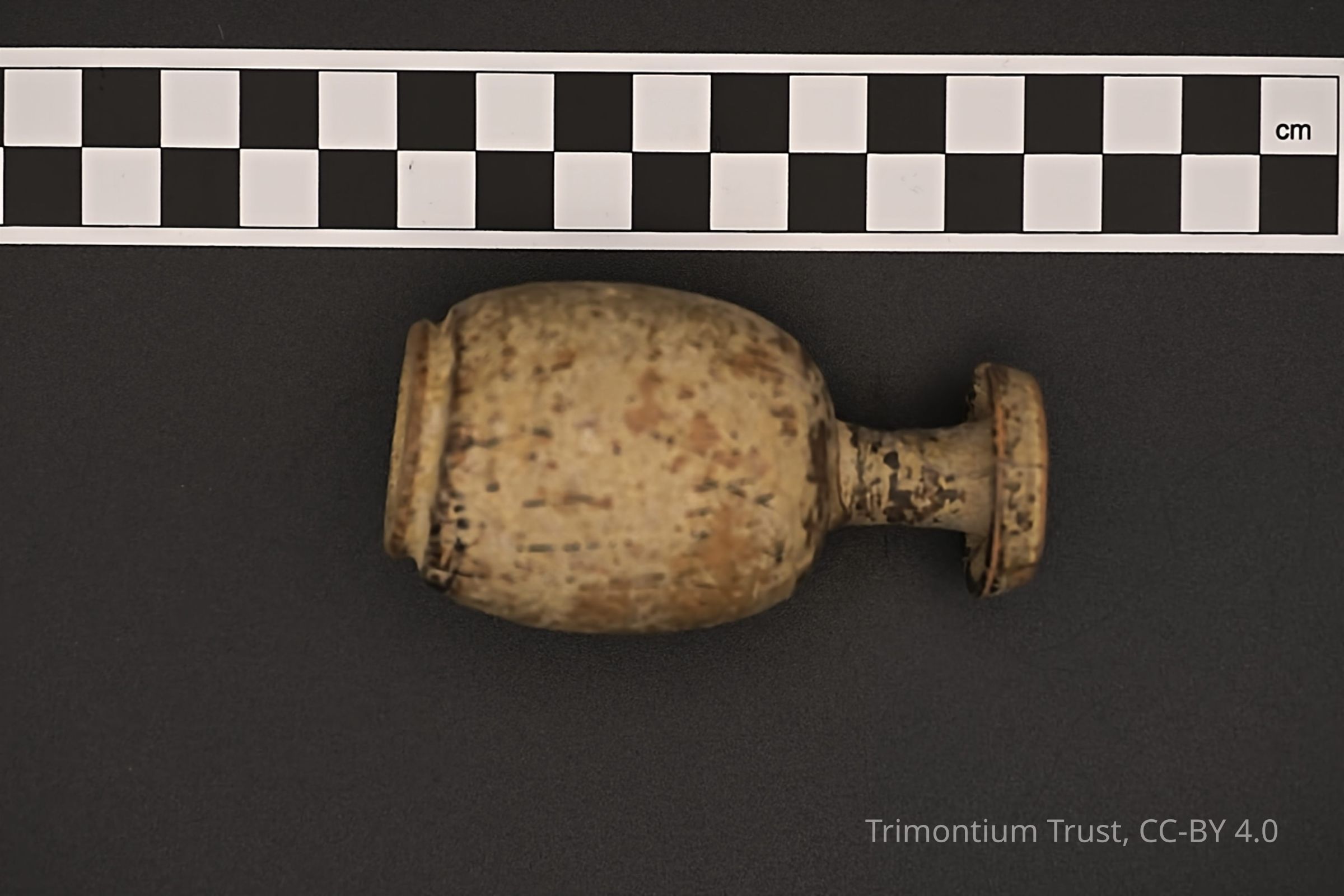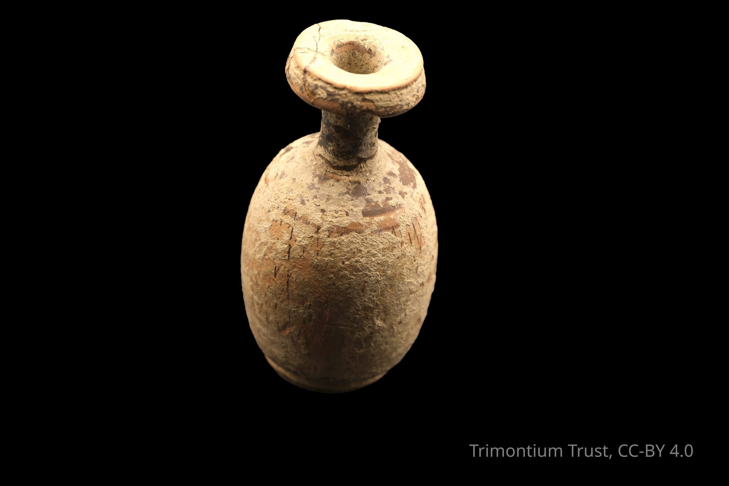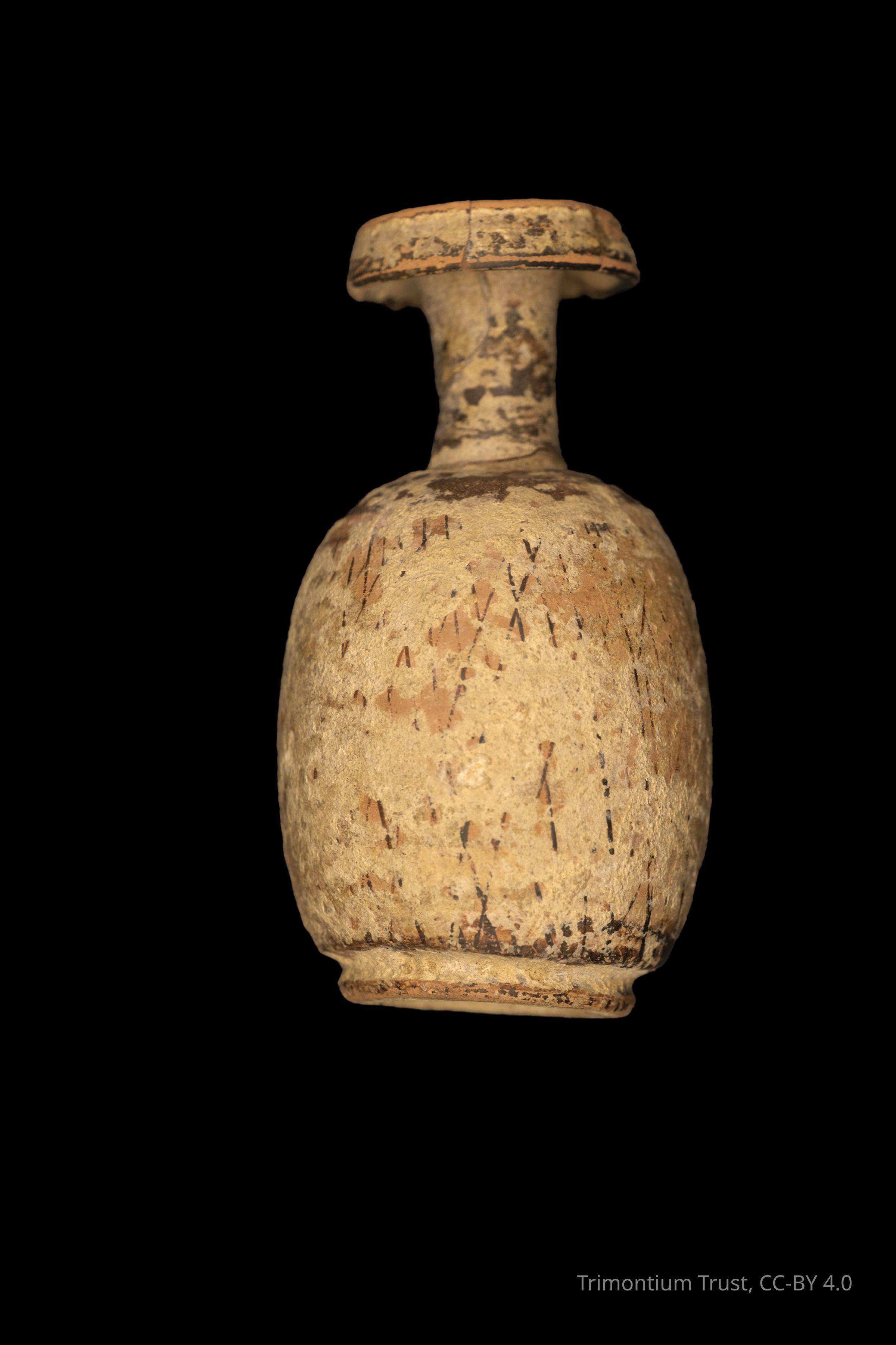 Likely Gnathia ware alabastron, black glazed pottery, southern Italy, c. 3rd - 4th C BC