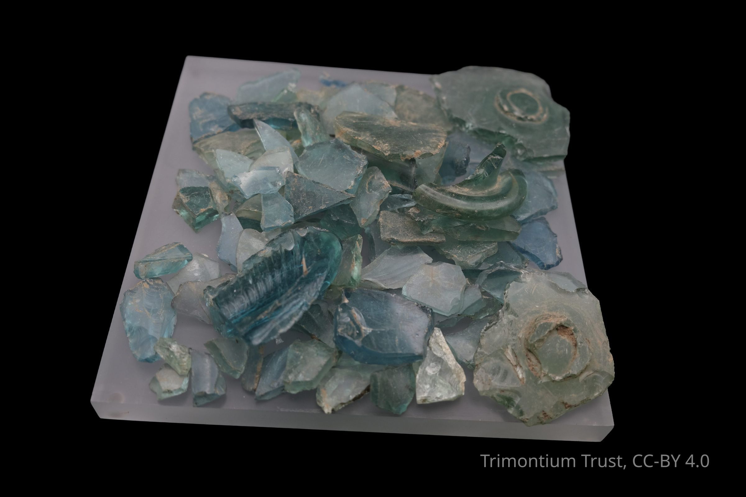 102 shards of glass from Newstead. Blue/green colour.Use