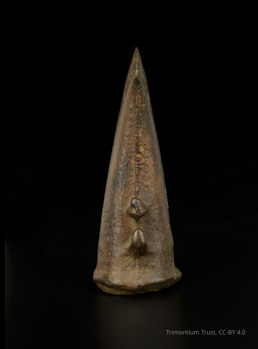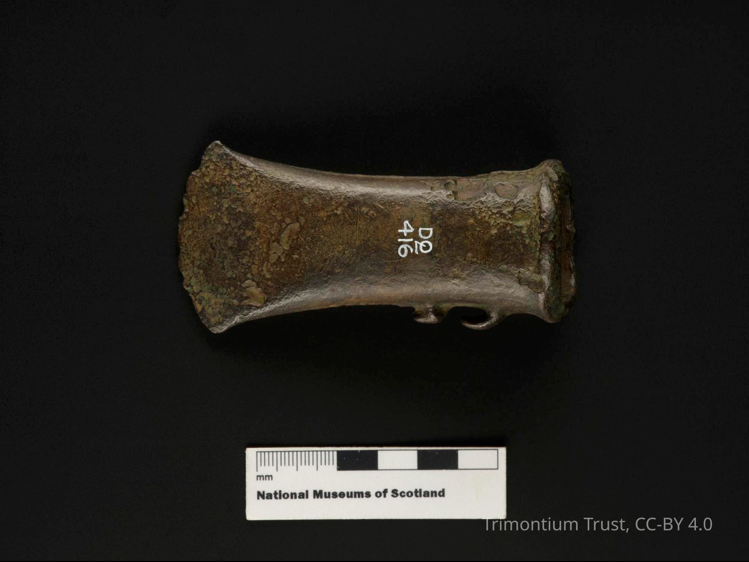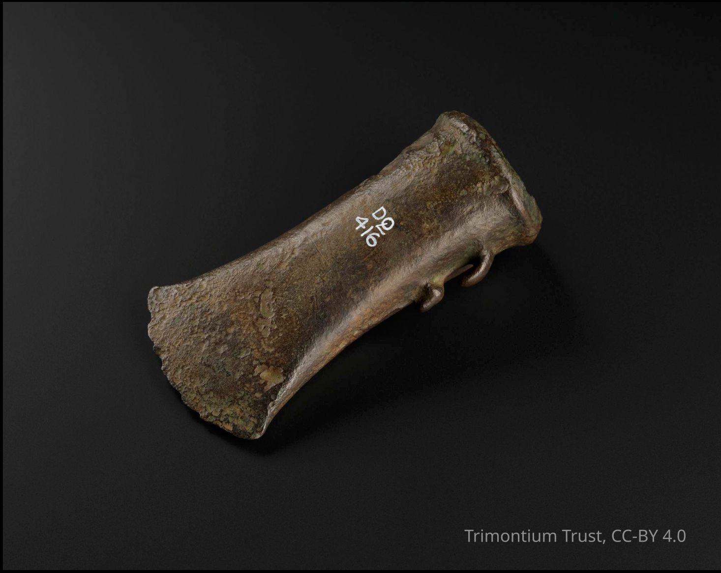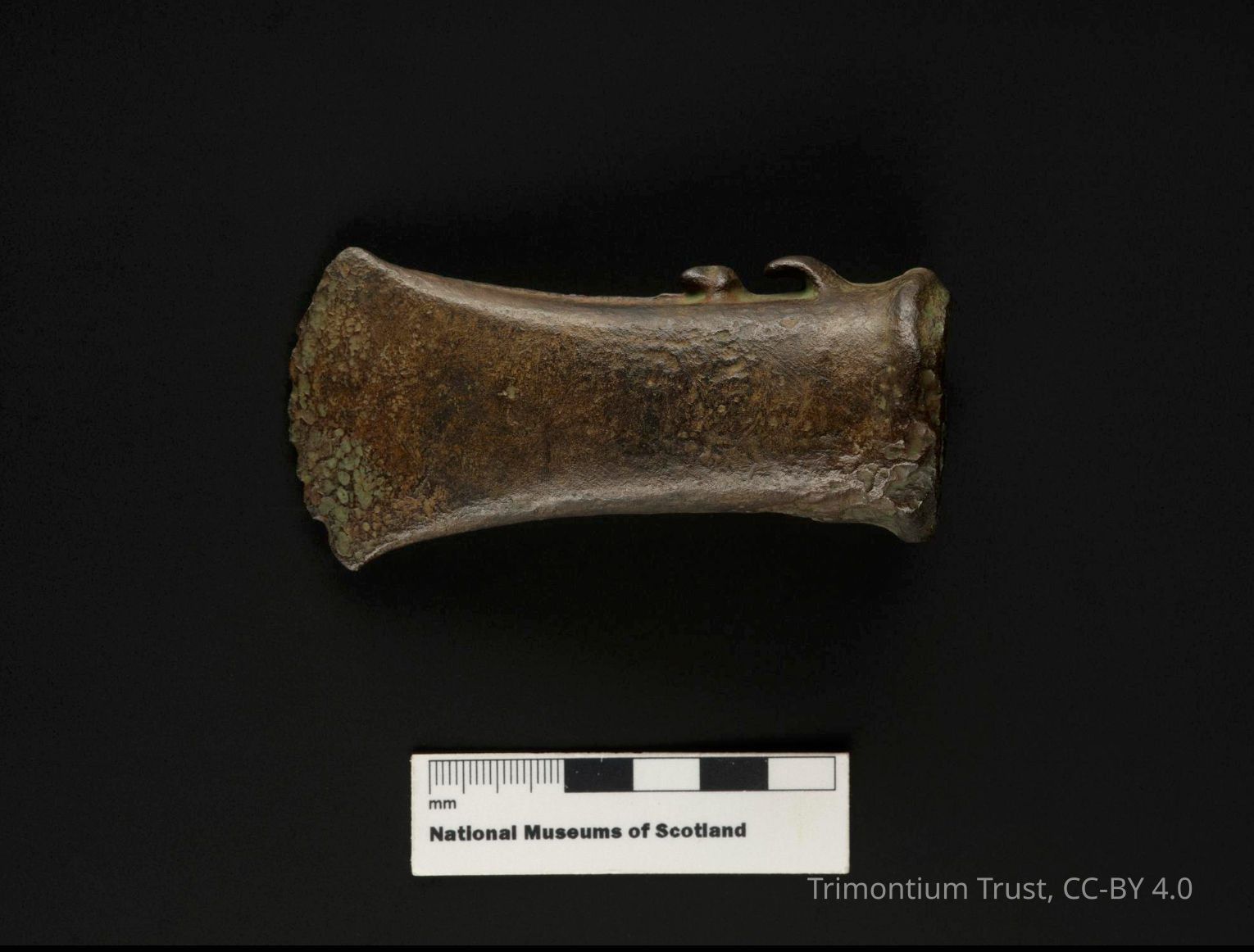 Socketed axe of bronze, with a miscast loop, late Bronze Age, found at Eildon Mid Hill, near MelroseUse