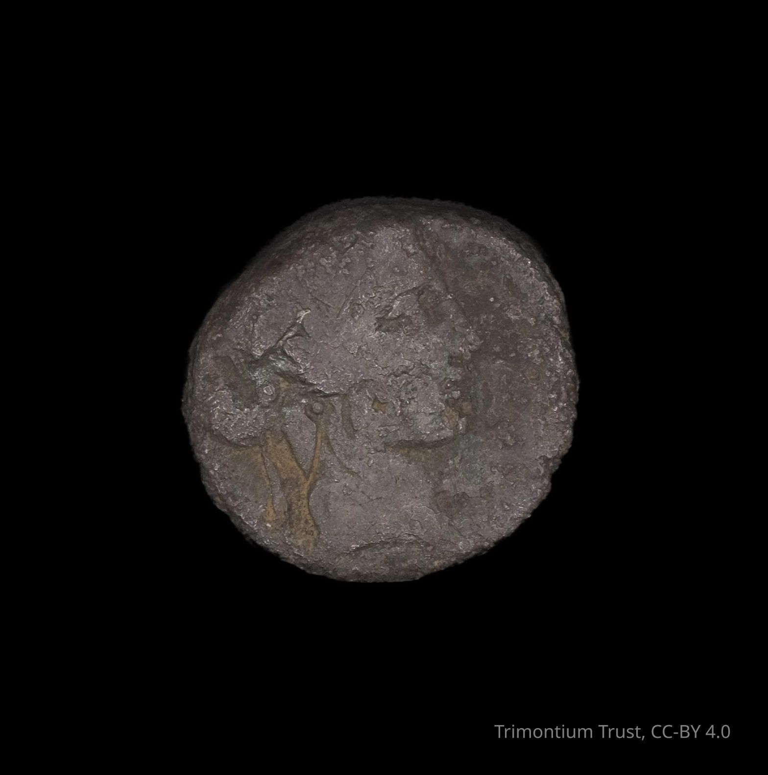 Republican denarius coin, silver. Female head of Roma, obverse - winged horse