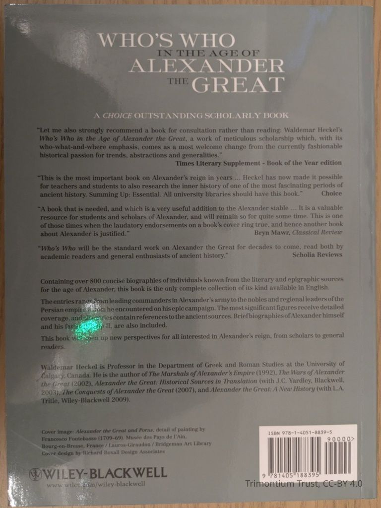 Who's Who in the Age of Alexander the Great contains concise biographies of over 800 individuals known from the literary and epigraphic sources for the age of Alexander. Covering significant figures, ranging from leading commanders in Alexander's army to the nobles and regional leaders of the Persian empire whom he encountered on his epic campaign. The only complete collection of its kind in English. Giving complete and balanced biographies, extending beyond the death of Alexander in 323 BC where relevant. Containing a full index and a concordance giving the variant names found in the ancient sources.Context