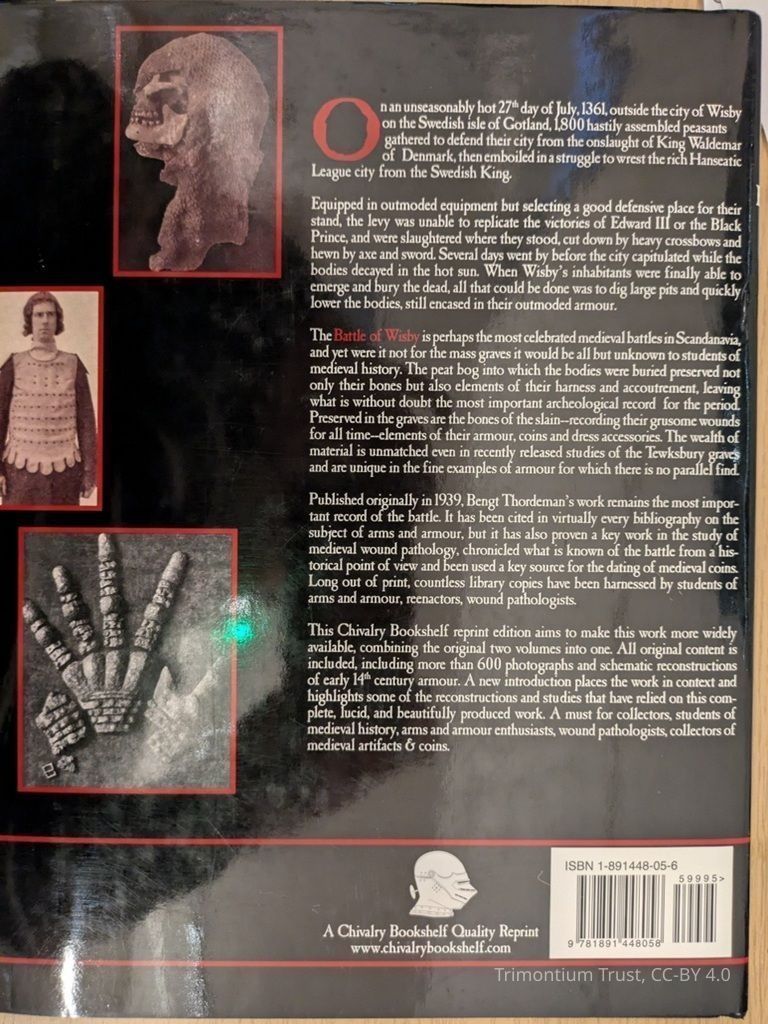 Armour from the Battle of Wisby 1361 published originally in 1939, Bengt Thordeman's work remains the most important record of the battle. It has been cited in virtually every bibliography on the subject of arms and armour, but it has also proven a key work in the study of medieval wound pathology, chronicled what is known of the battle from a historical point of view and been used a key source for the dating of medieval coins. In the 1920s, Bengt Thordeman and a team of archaeologists excavated at the site of the burial and produced a work that has stood the test of time. The 900+ photographs and illustrations record in great detail the coat of plate cote armours, brigandine finger gauntlets, dress accessories and wound pathology for many of the victims. This reprint edition aims to make this work more widely available, combining the original two volumes into one.Context