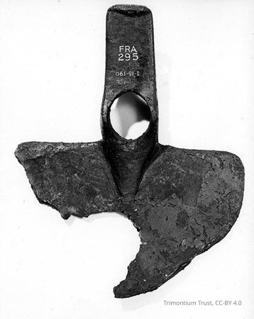 Hoe of iron, blade and pick much worn with part of the blade missing, from the Roman site at Newstead (Trimontium), Roxburghshire, 80 - 180 ADUse