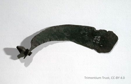 Helmet reinforcing strip of bronze, from the Roman site at Newstead (Trimontium), 80 - 180 AD