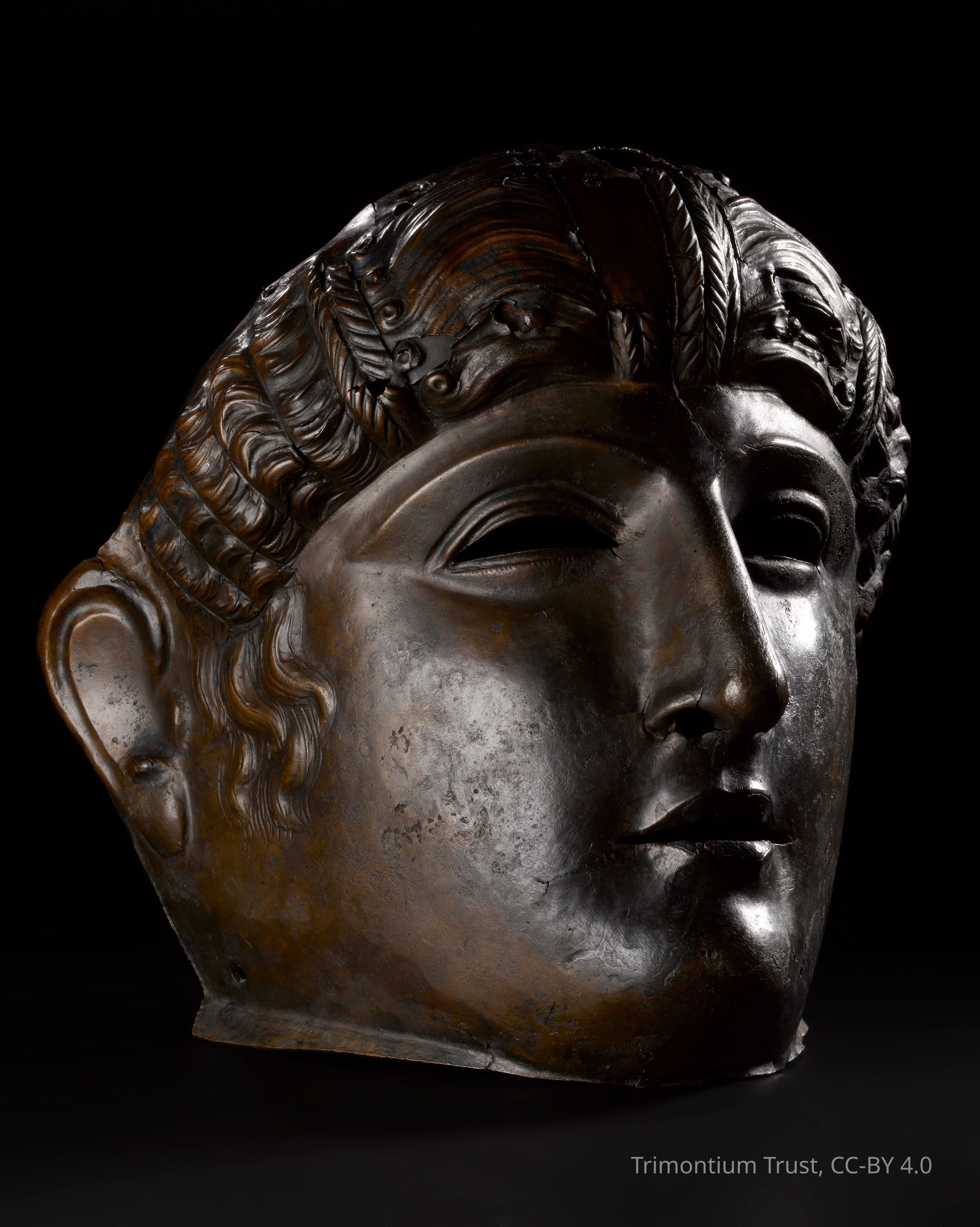 Roman cavalry units held spectacular displays in the parade ground called 'hyppika gymnasia'. The cavalrymen wore elaborate helmets with face mask, often representing figures of mythology or characters in a battle. Three examples survive from Newstead, and this is the most complete.Collection