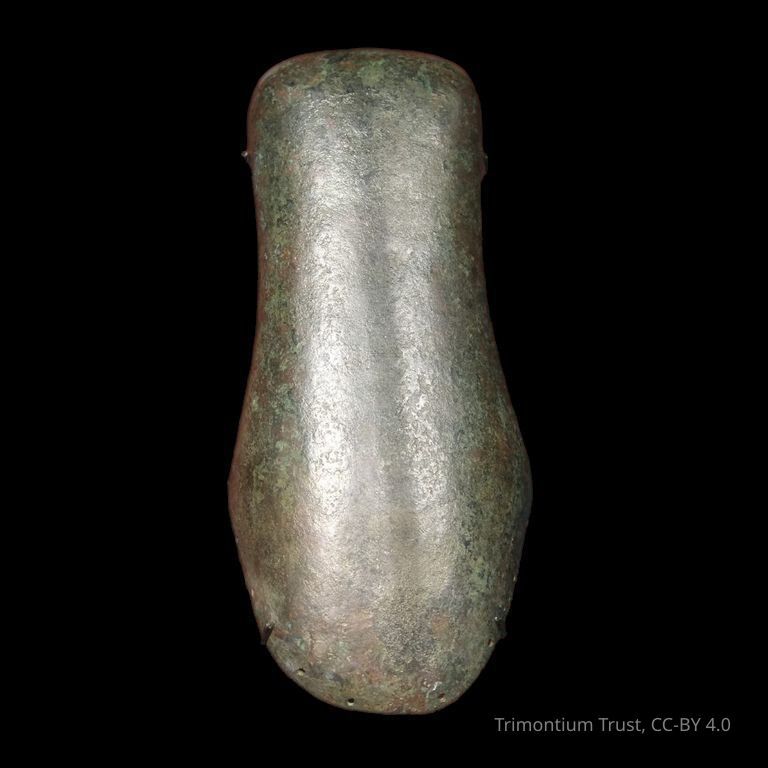 A galloping cavalry horse was terrifying to face. The bronze horse statuette shows how such a horse would have looked. The saddle had horns which held the rider firmly, so there was no need for stirrups. These bronze plates were used to stiffen the horns. The original owner has inscribed his name inside one of them.