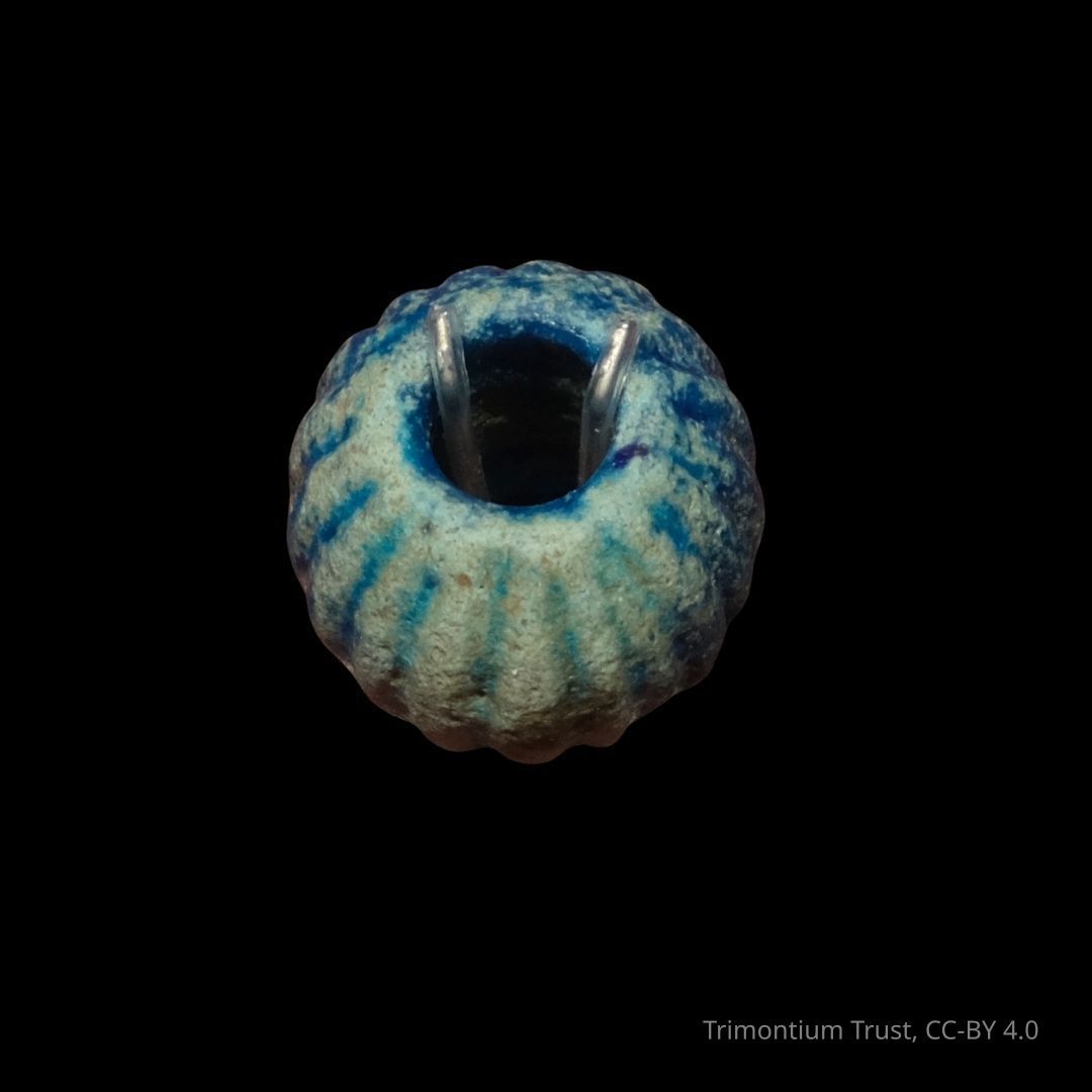 Glass melon bead, part of the Cruickshank collection of finds from Newstead, RoxburghshireUse