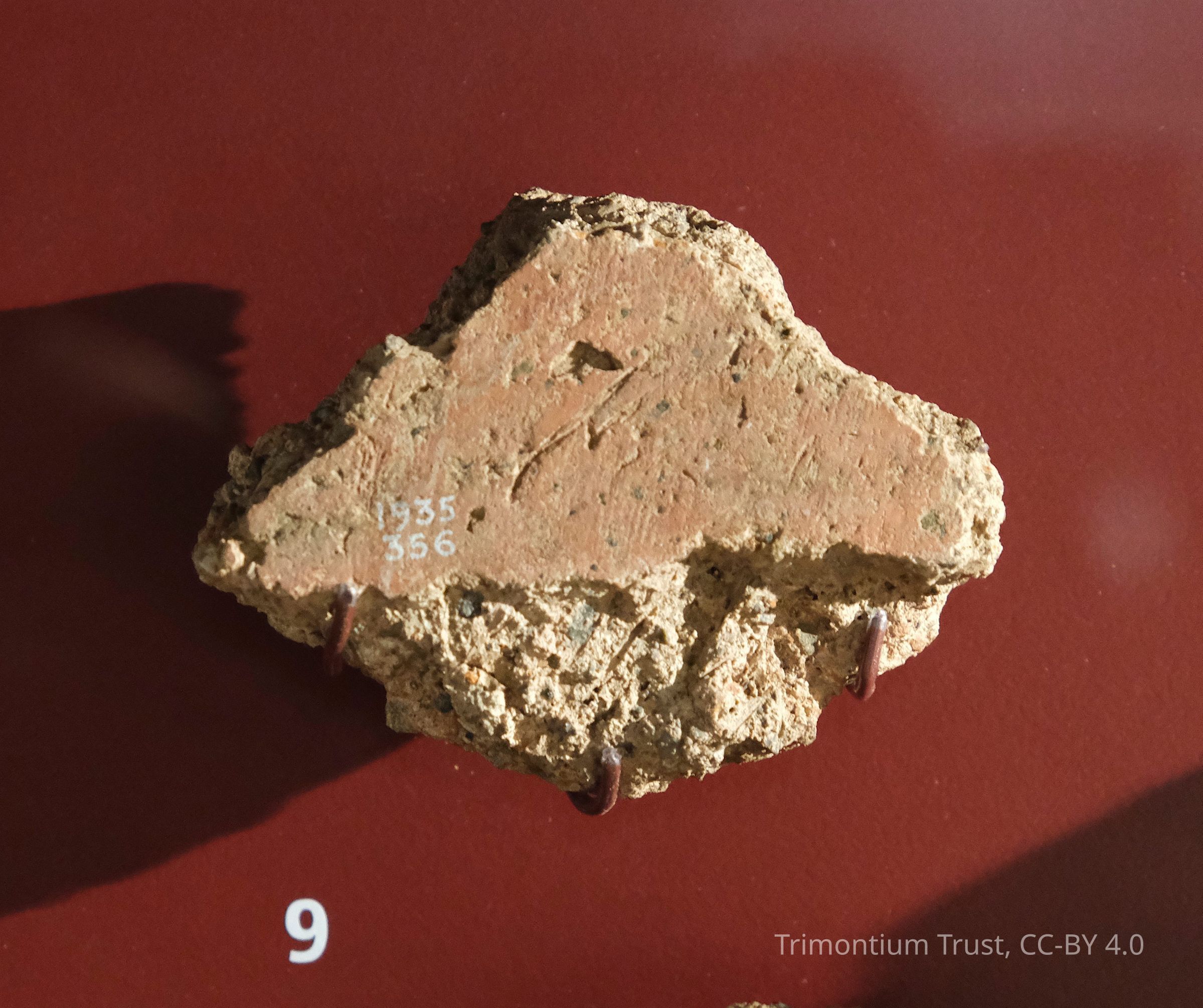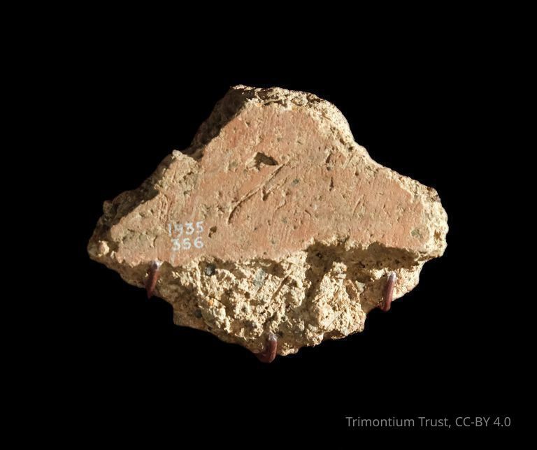 Fragment of plaster coloured dark red, probably from baths, Newstead.Use