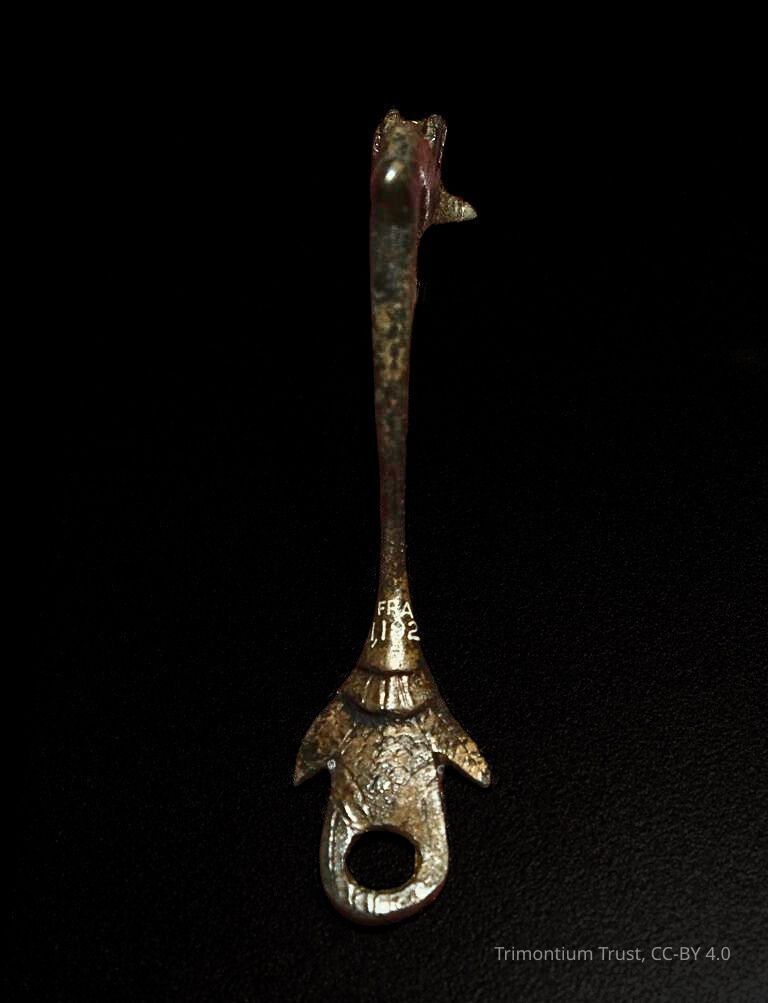 Handle of a flagon of bronze, from the Roman site at Newstead. Incised decoration of foliage.