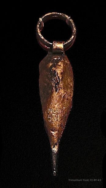 Officers had fine bronze vessels on their dinner table. These bowl fittings once held the handles on the sides of a washbasin, for washing one’s hands at a meal.