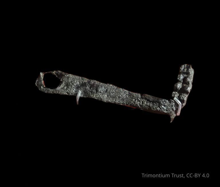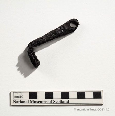 Keys of various forms are found on Roman sites in Britain. The form of tumbler lock for which this key was used is also known from some native sites. The keys are generally T-shaped or L-shaped, as this example.