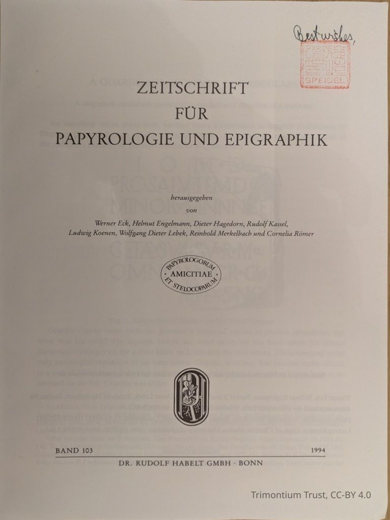 Zeitschrift für Papyrologie und Epigraphik (Journal of Papyrology and Epigraphy), Volume 103