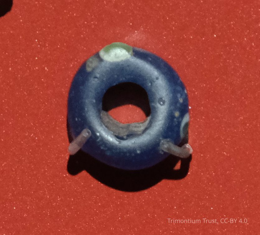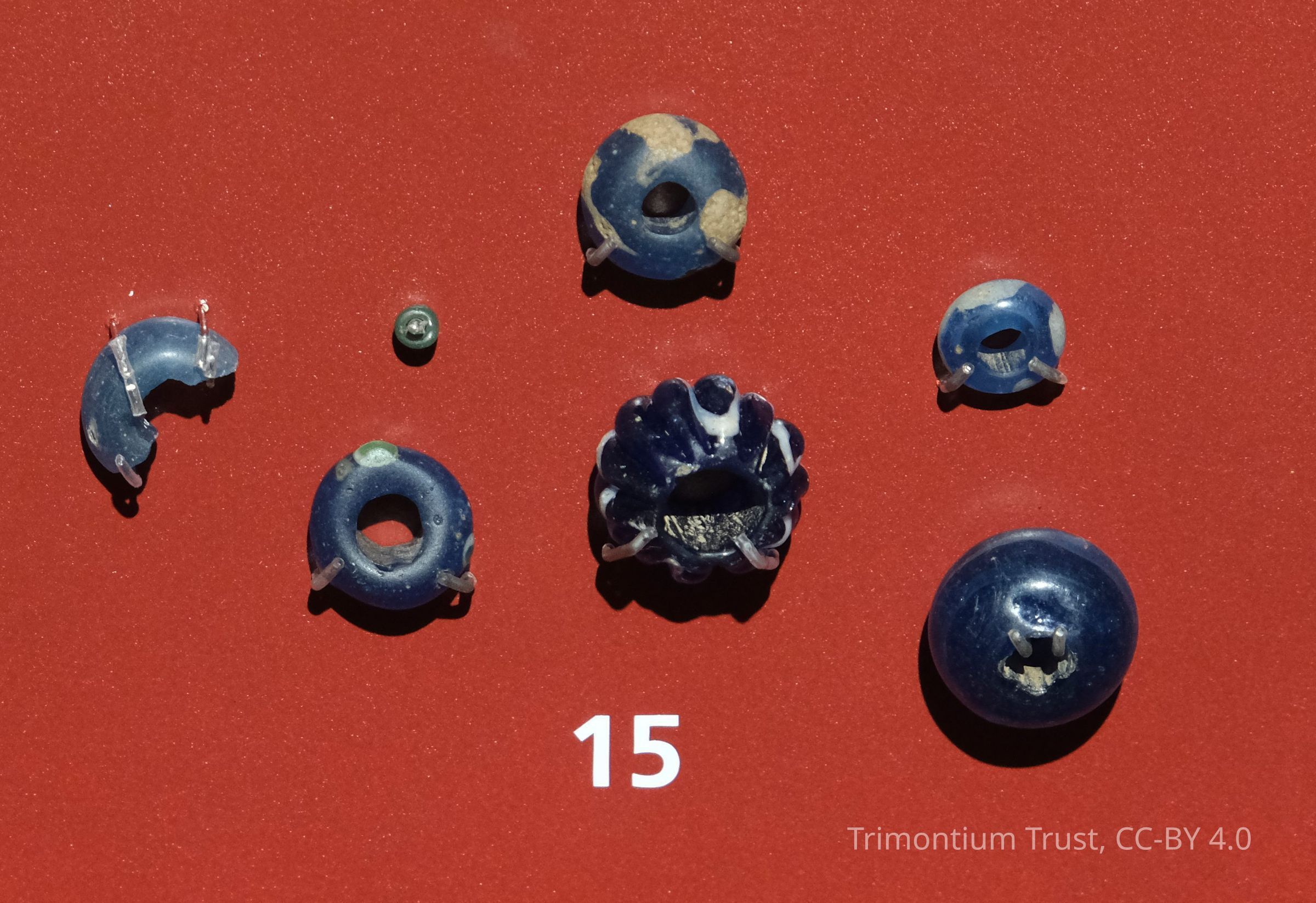 The history of the glass bead in the Roman empire began as a status symbol for the wealthy and elite, however by the time the Romans established Trimontium in the late 1st century CE, glass ware was more commonly available and manufactured in large scale. Therefore, it could be procured by different sectors of the population. There were simple pieces widely available and also very specialized types of luxury glass. Bead necklaces were popular in Roman Britain.Collection