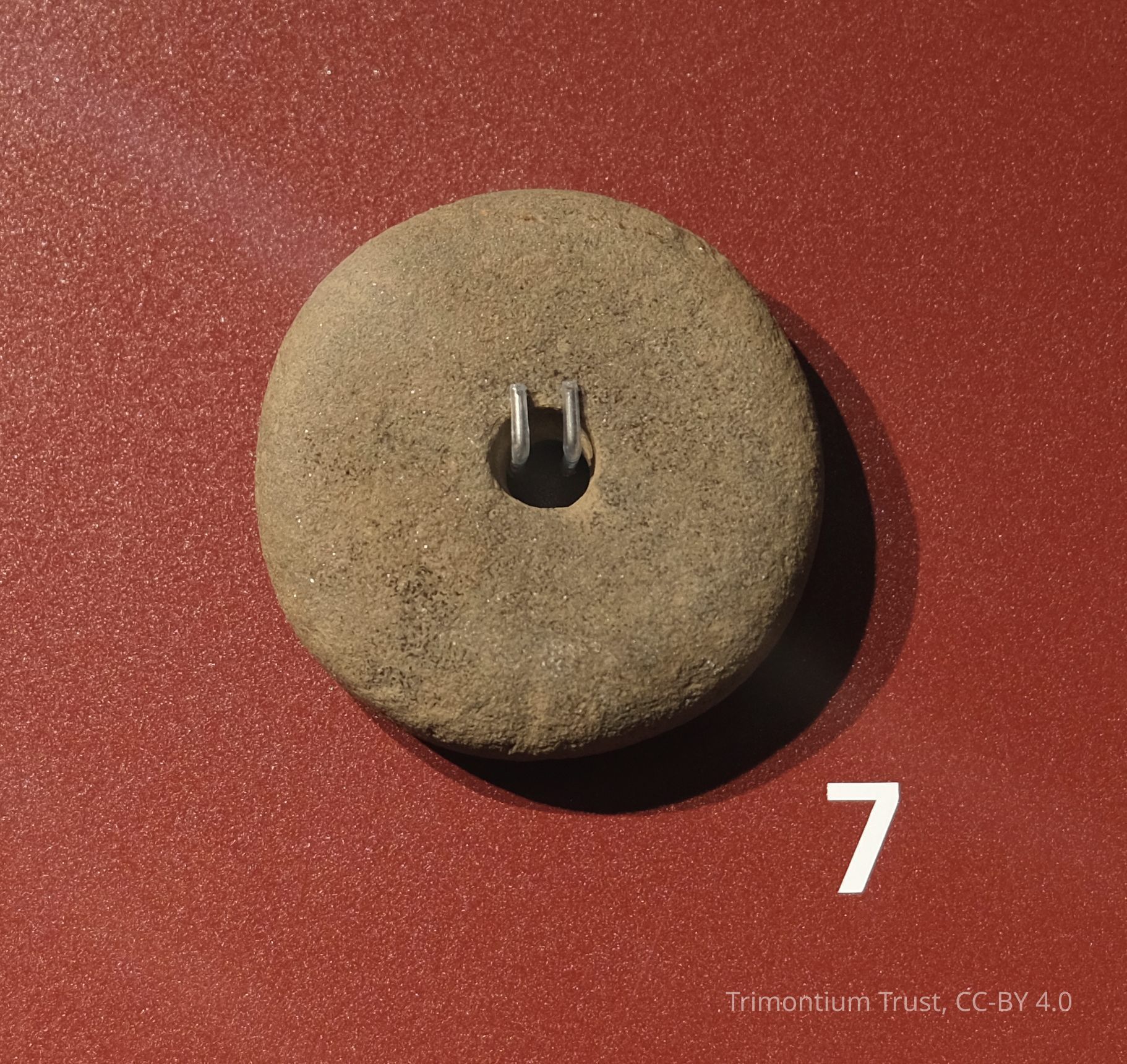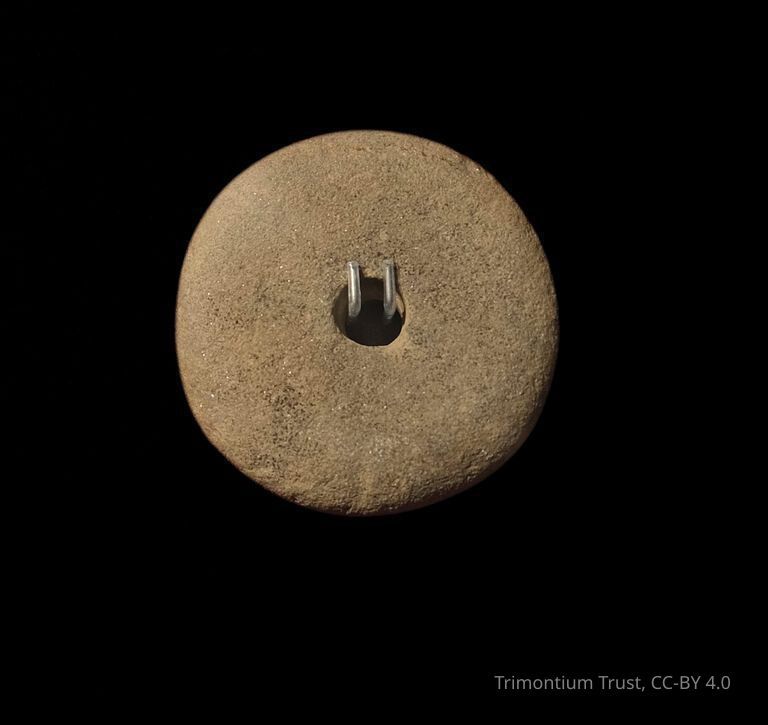 Spindle whorls were used to make thread. A dowel would be inserted though the hole with wool wrapped around it. The whorl would then be spun in order to make the thread.Context