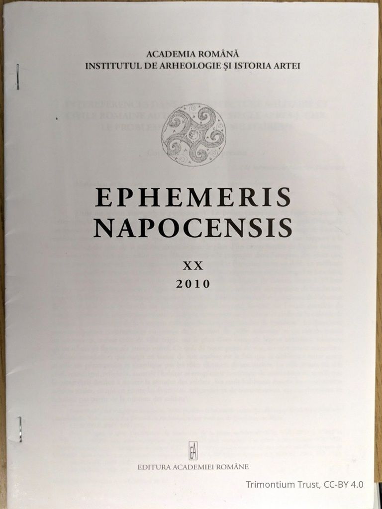 Villa Adriana - The Problem of Military Towns - Studying Roman Cults of Eastern Origin in Dacia - Geophysical Research in Eastern Transylvania - Byzantine Belt Buckles from North Africa - Votive inscription from Virunum - Municipal Subaltern in the Danube Provinces - Roman Bronze Appliqués with Half-Pierced Loop - A Weight from the Roman Fort of Ilişua - Consecration Altars from Floreşti - Forgotten Rituals Connected to Agriculture in the Early Migration PeriodISSN