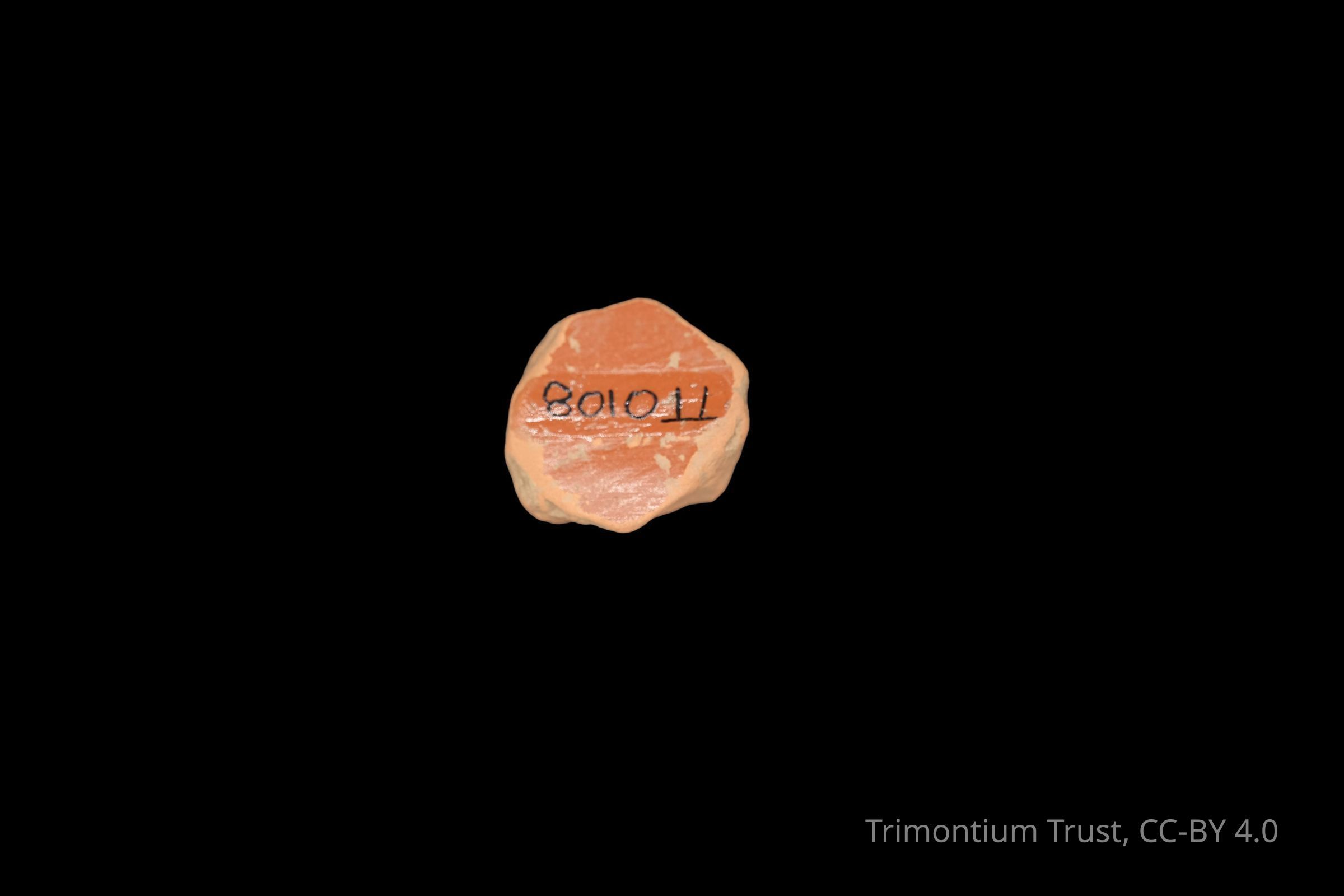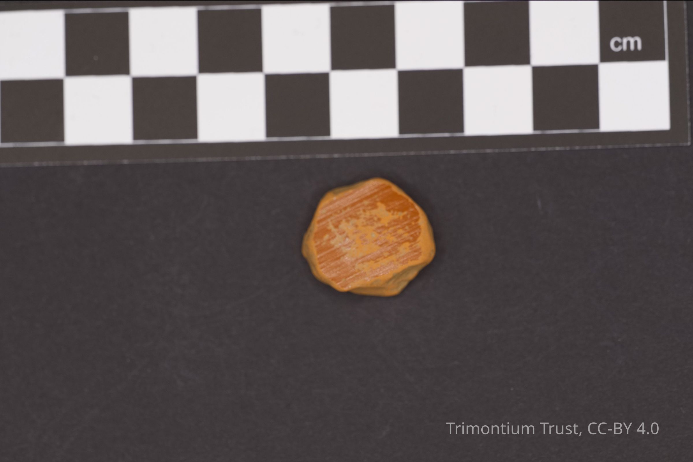 This small piece of Samian ware would have been recycled to be used as a gaming piece.