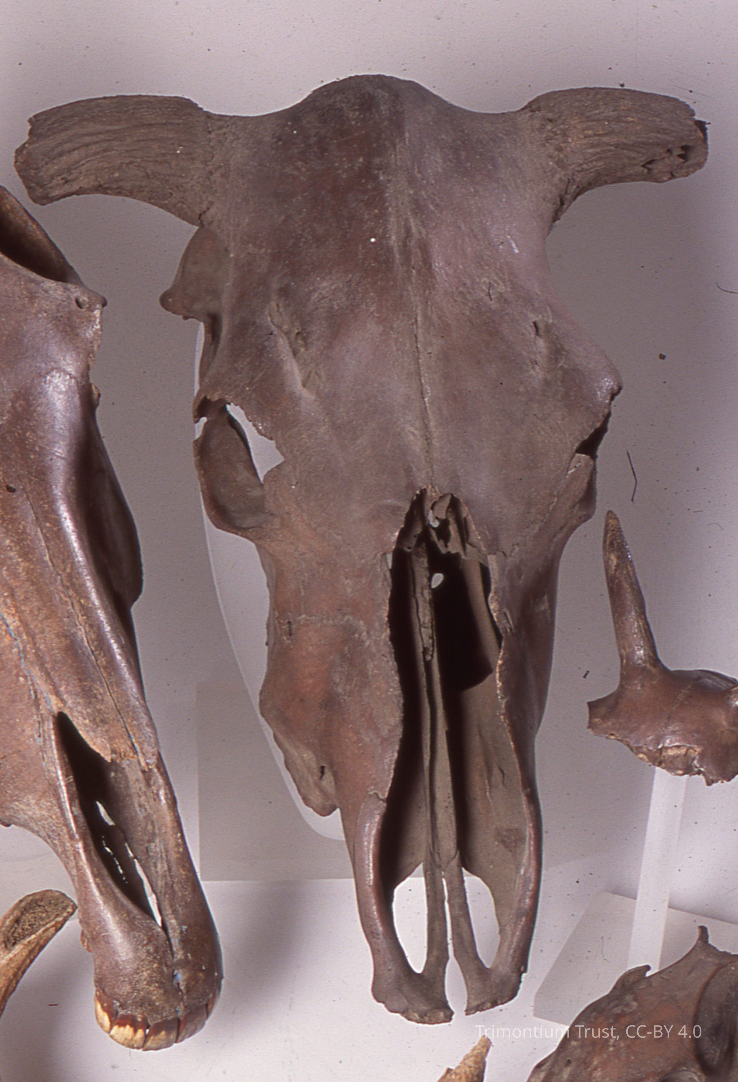 Upper part of skull of Cattle, Bos taurus, Roman Camp, Newstead, Melrose, RoxburghshireCollection