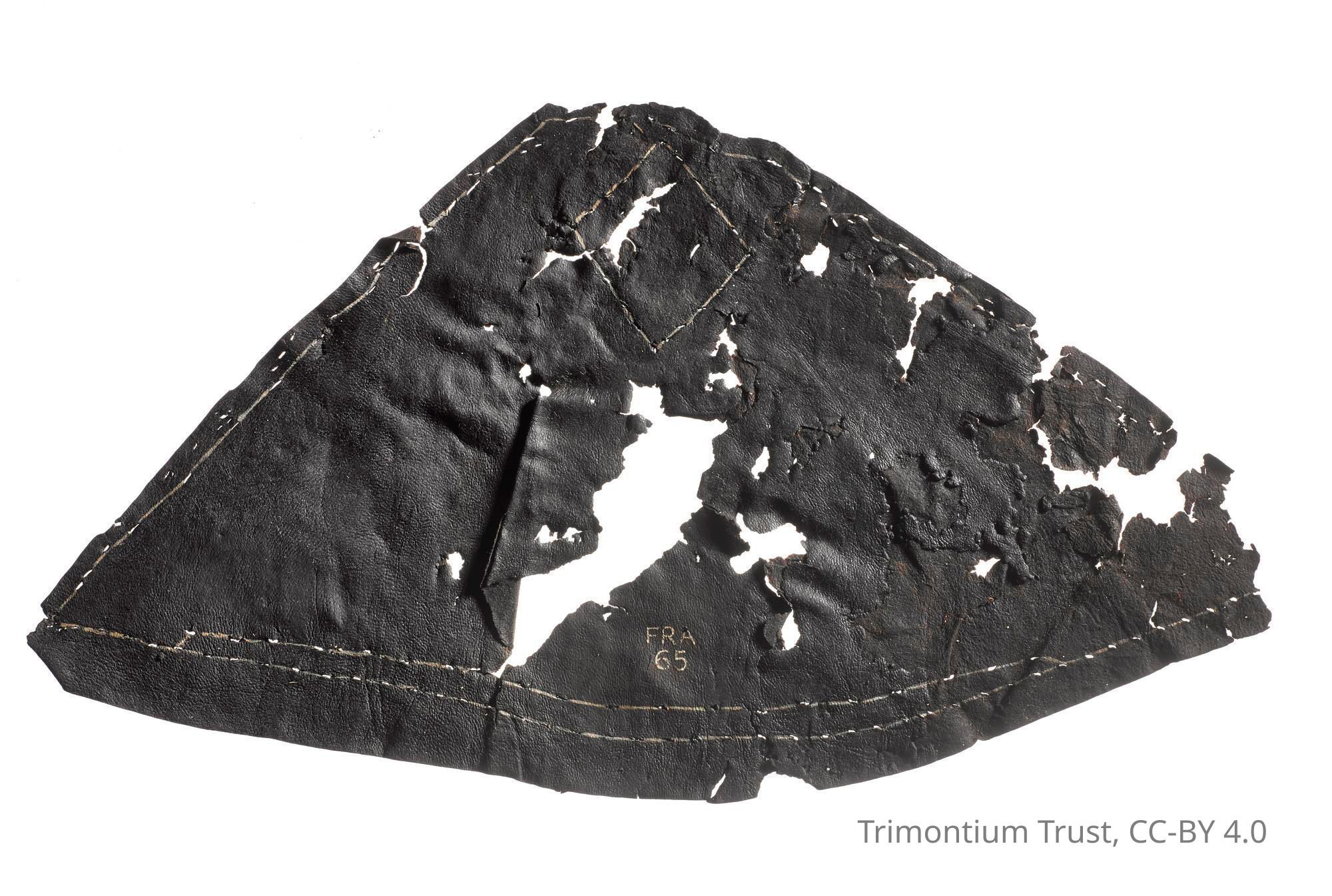 Leather panel used as a tent gable top, one of two, from the Roman site at Newstead (Trimontium), Roxburghshire, Scotland, 80-180 ADUse