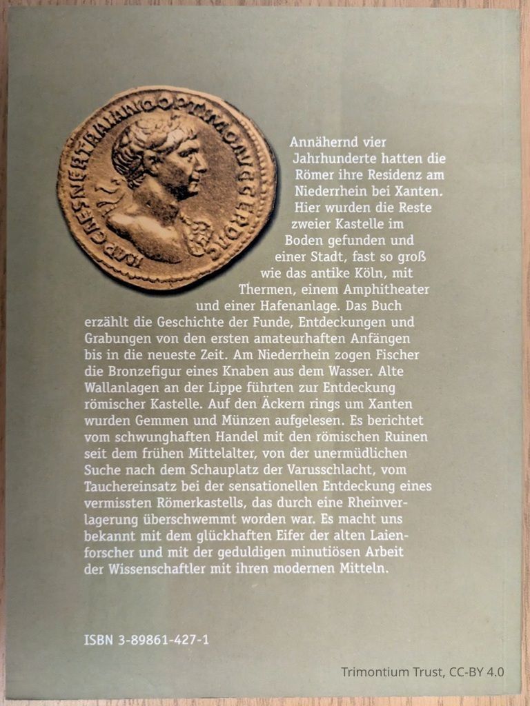 Die Römer am Niederrhein, in its 5th Edition, since its first publication, excavations in Xanten have yielded new insights. Through text and images, the research is presented in a clear and accessible manner, offering a comprehensive and understandable overview of the Archaeological Park of Xanten (On the site of the Roman city of Colonia Ulpia Traiana, Germany's largest open-air archaeological museum).Lexicon