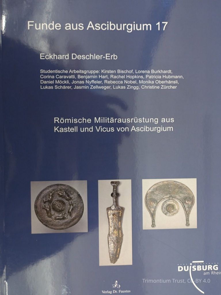 The Roman fort of Asciburgium is located on the Lower Rhine in present-day Moers-Asberg near Duisburg. The "Finds from Asciburgium," is a series of publications that present the Roman Military finds from the fort and vicus of Asciburgium. This work is part of a student exercise at the University of Zurich and in close cooperation with the Duisburg City Archaeology Department.Lexicon