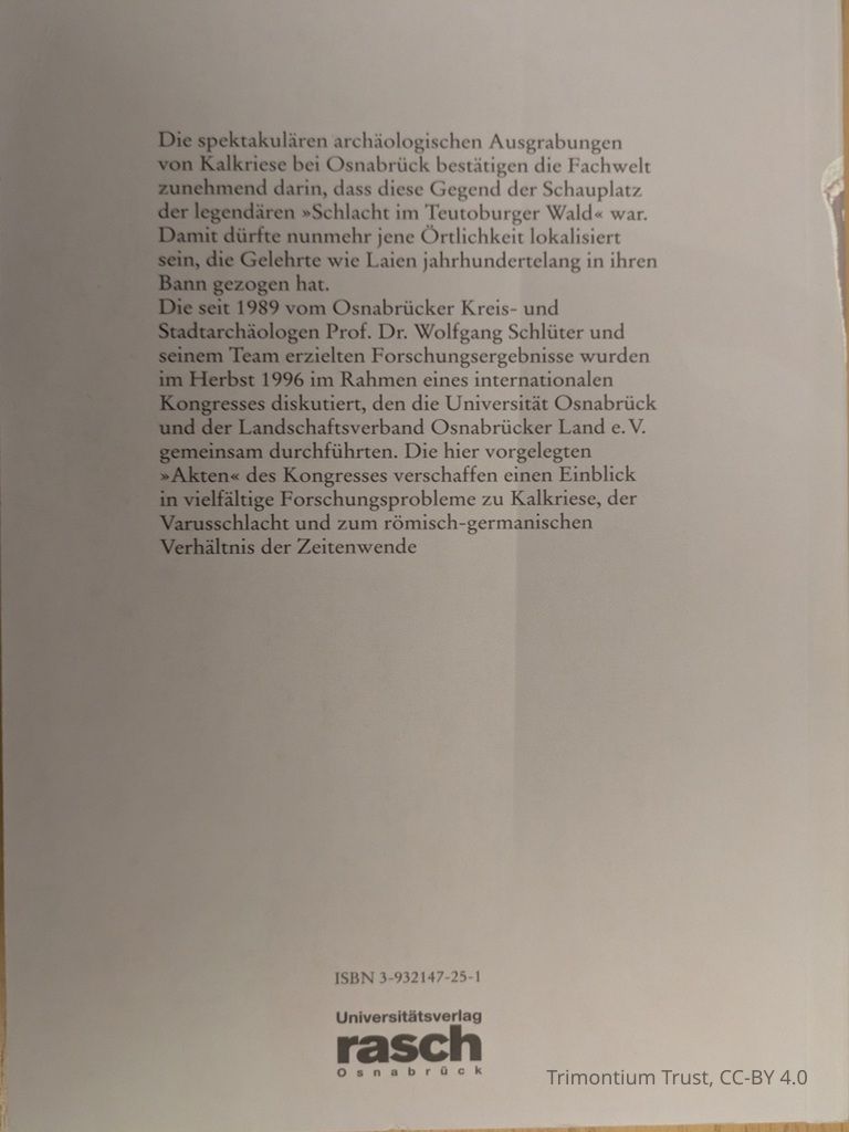 International Congress of Osnabrück University - Roman Empire (Germany) - Earlier Imperial Period - Middle Imperial Period - War/Military Affairs - Battles/Battlefields - History of Geographical Regions (Germany) - Kalkriese - Teutoburg Forest - Germania - Battlefields - Late Augustan PeriodISBN