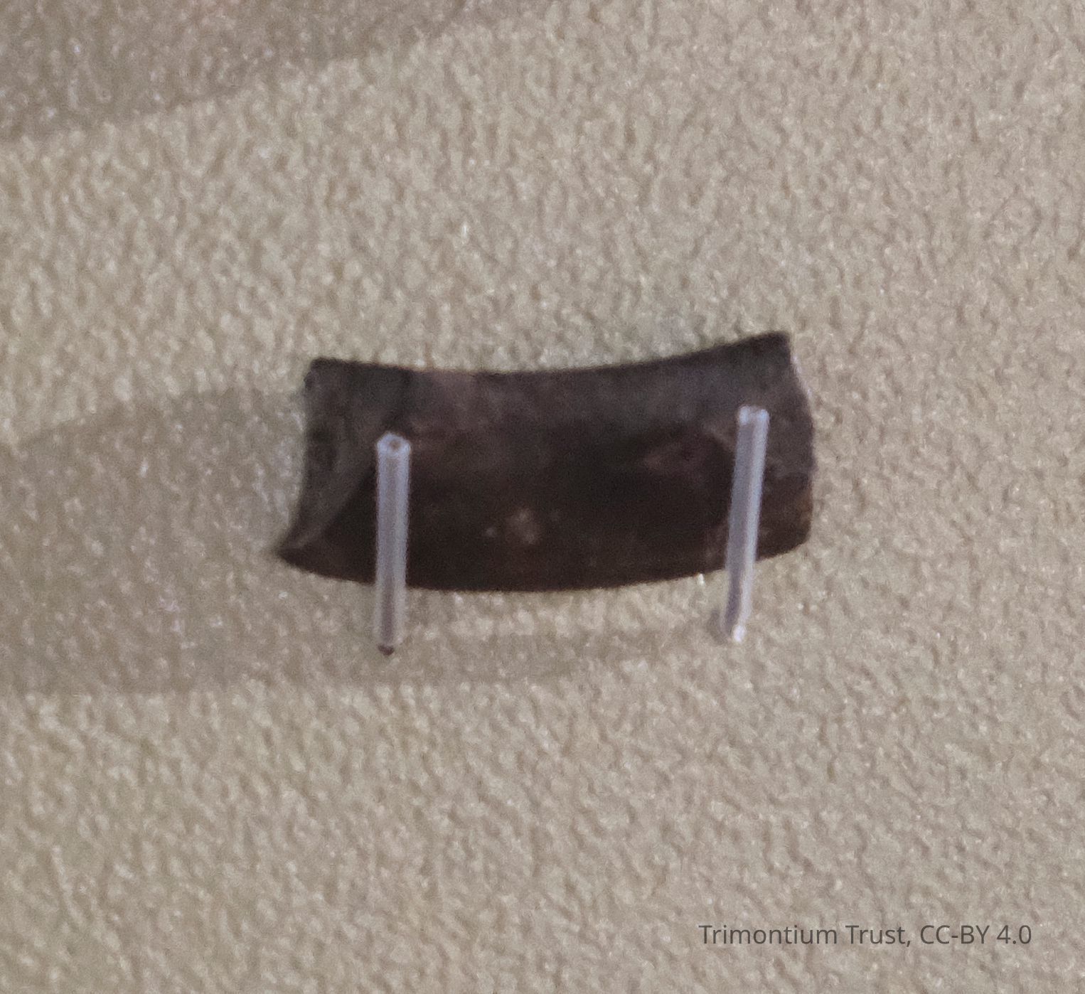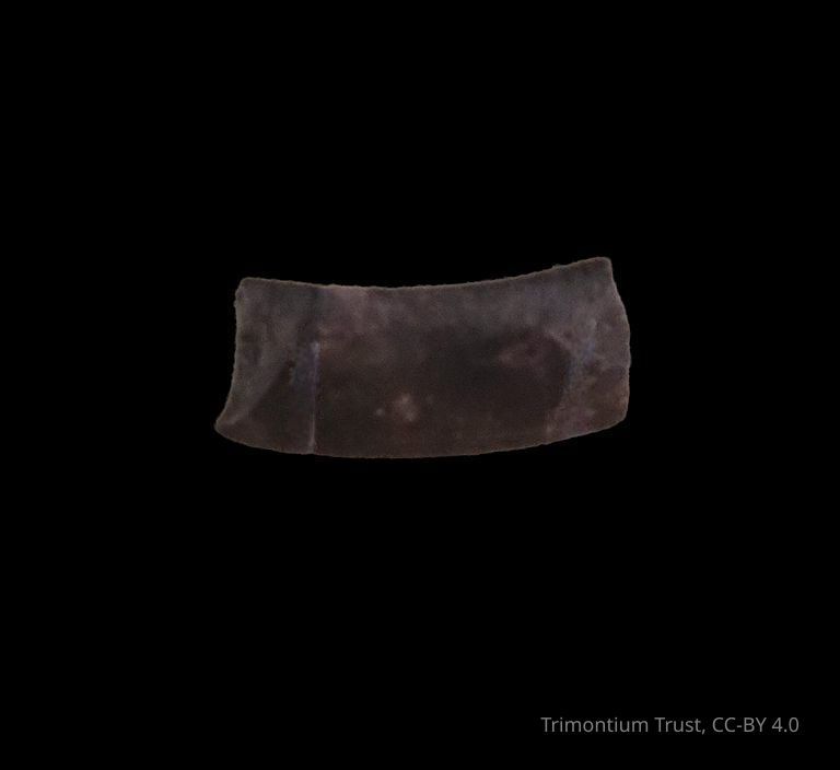 Fragment of armlet, possibly cannal coal, Eildon Hill. Cannel coal is a soft coal that can be carved and polished. It is not local and must have been imported.