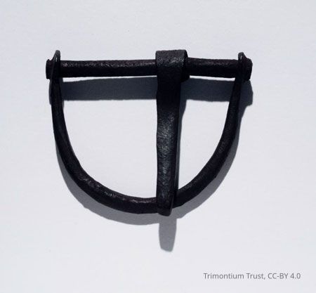 Iron buckle used to fasten wide straps or girths, from the Roman site at Newstead (Trimontium), 140 - 180 ADUse