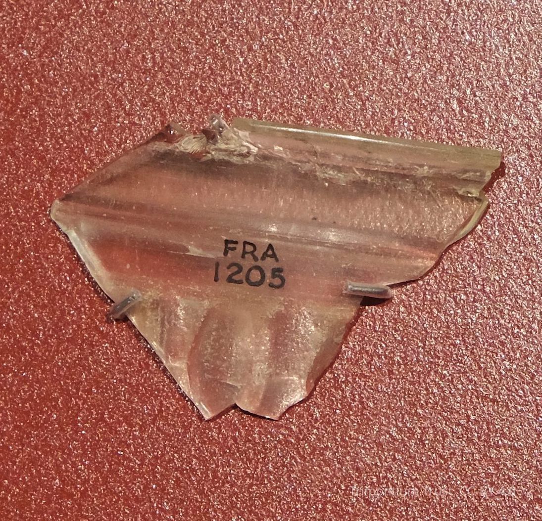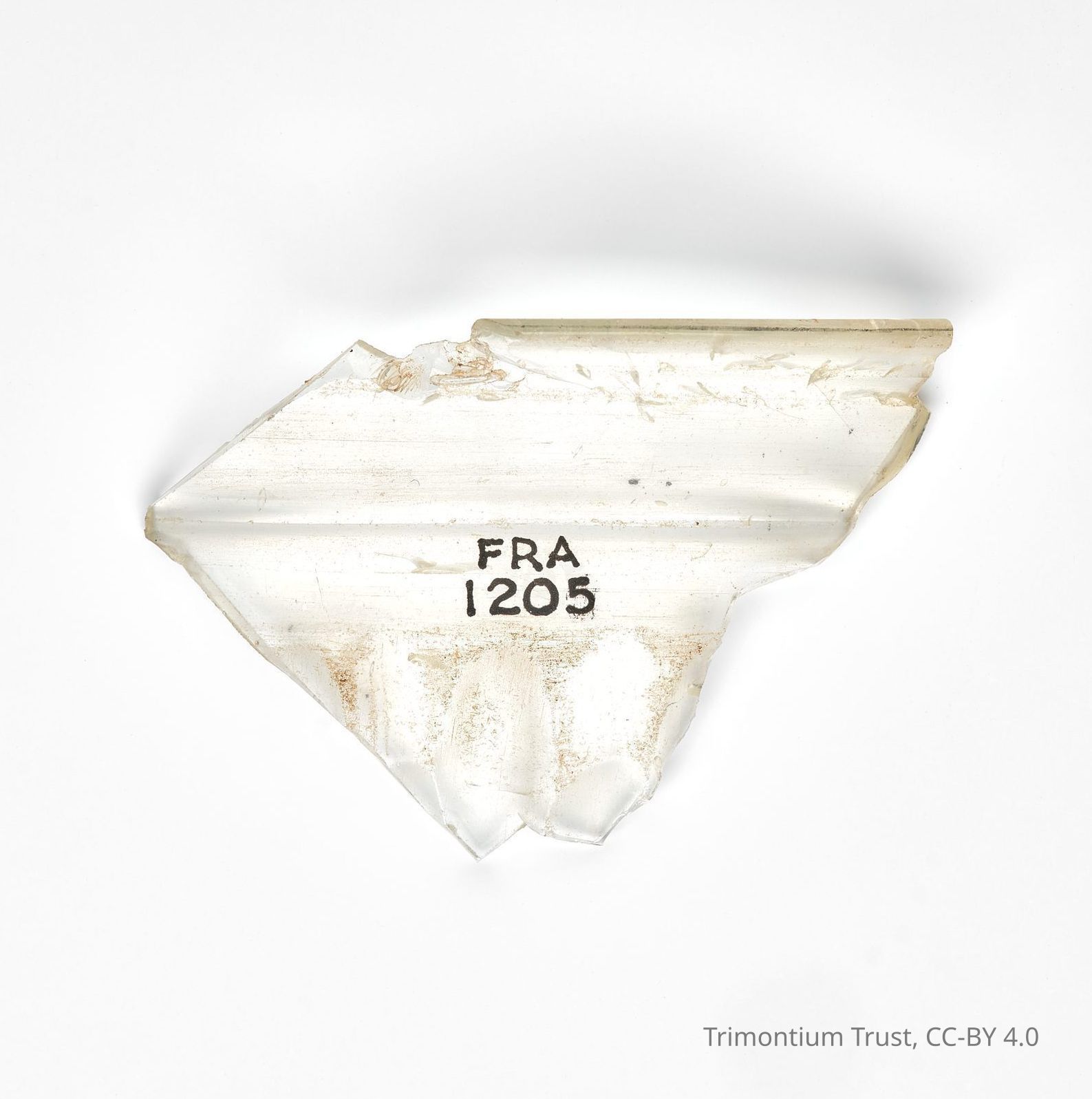Triangular portion of a vessel of clear glass, part of the lip and body, ornamented with parallel lines of incised ovals cut with a wheel, from the Roman site at NewsteadUse
