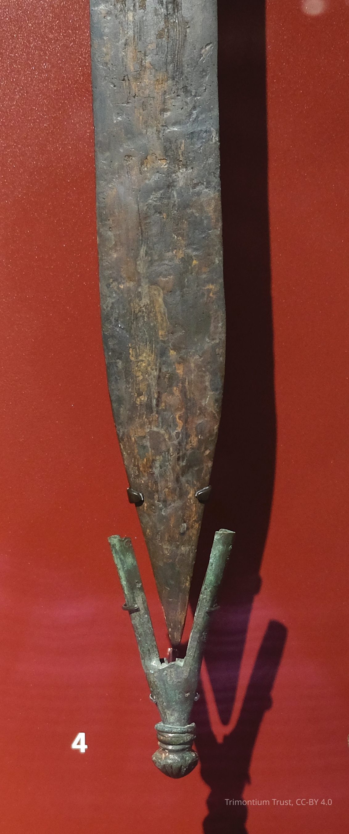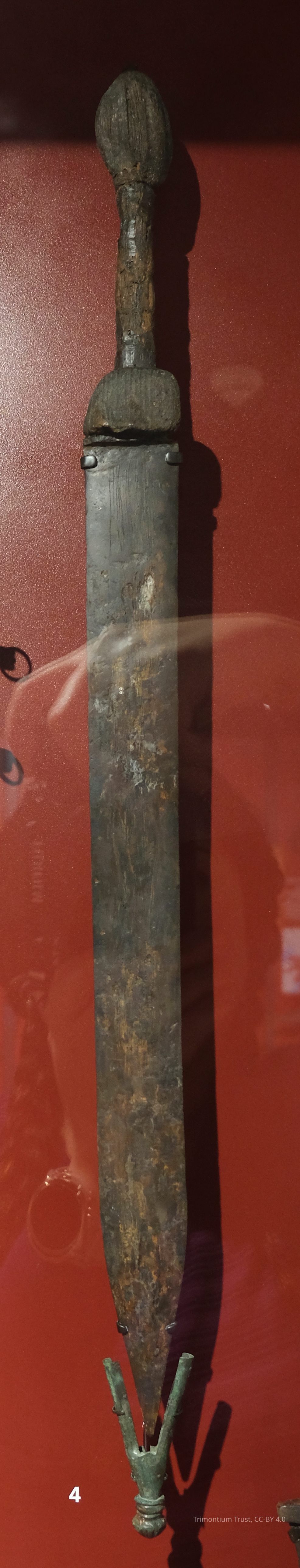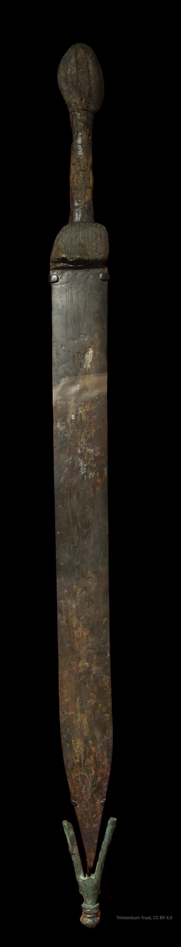 A legionary was armed with a javelin (pilum) and a sword, and carried a dagger (pugio) for emergencies. In the first and early second century AD, the preferred sword type was the gladius, a short stabbing weapon suitable for fighting in tight formation. During the second century, a longer slashing sword, the spatha, became popular as fighting styles changed.