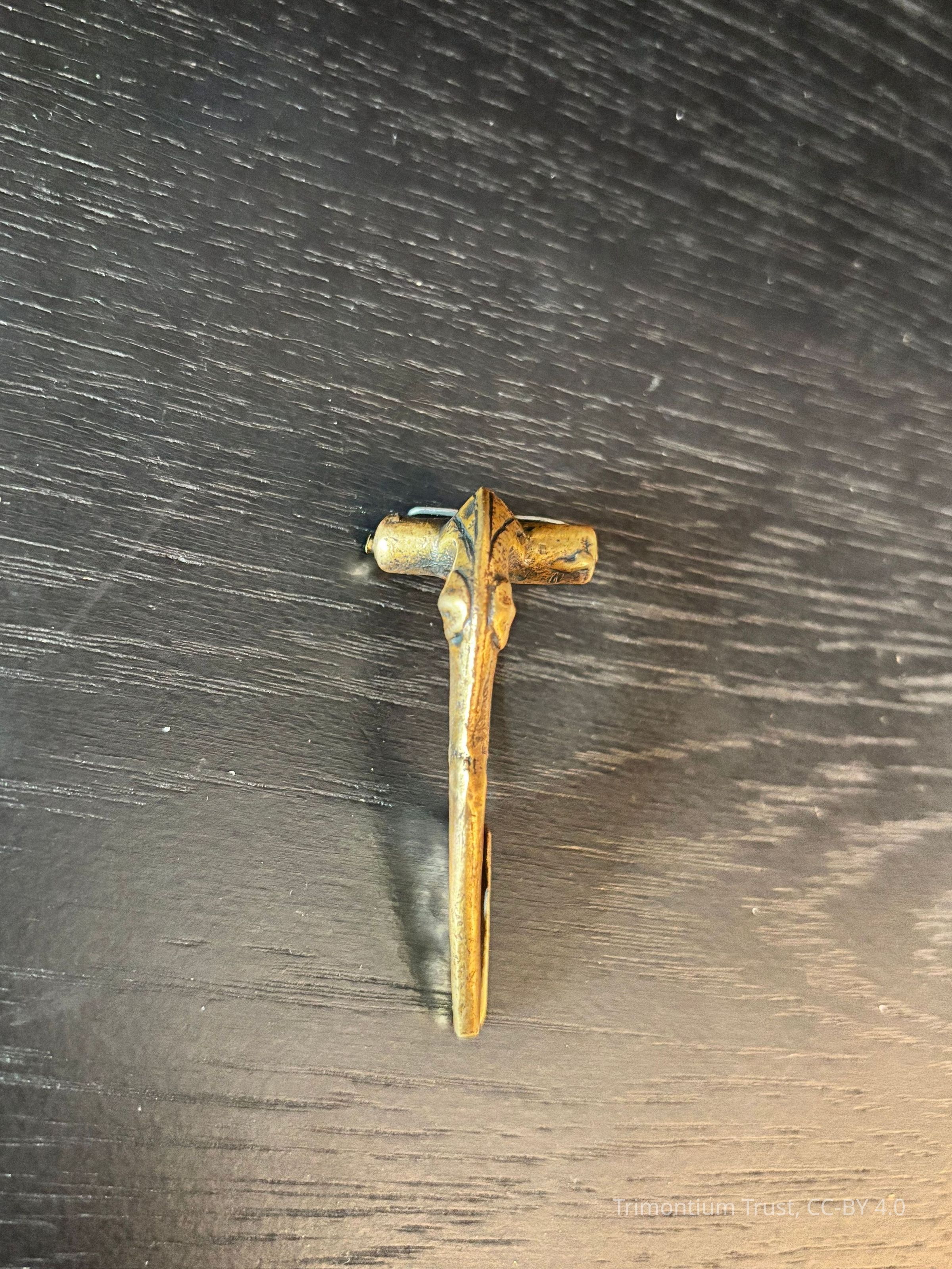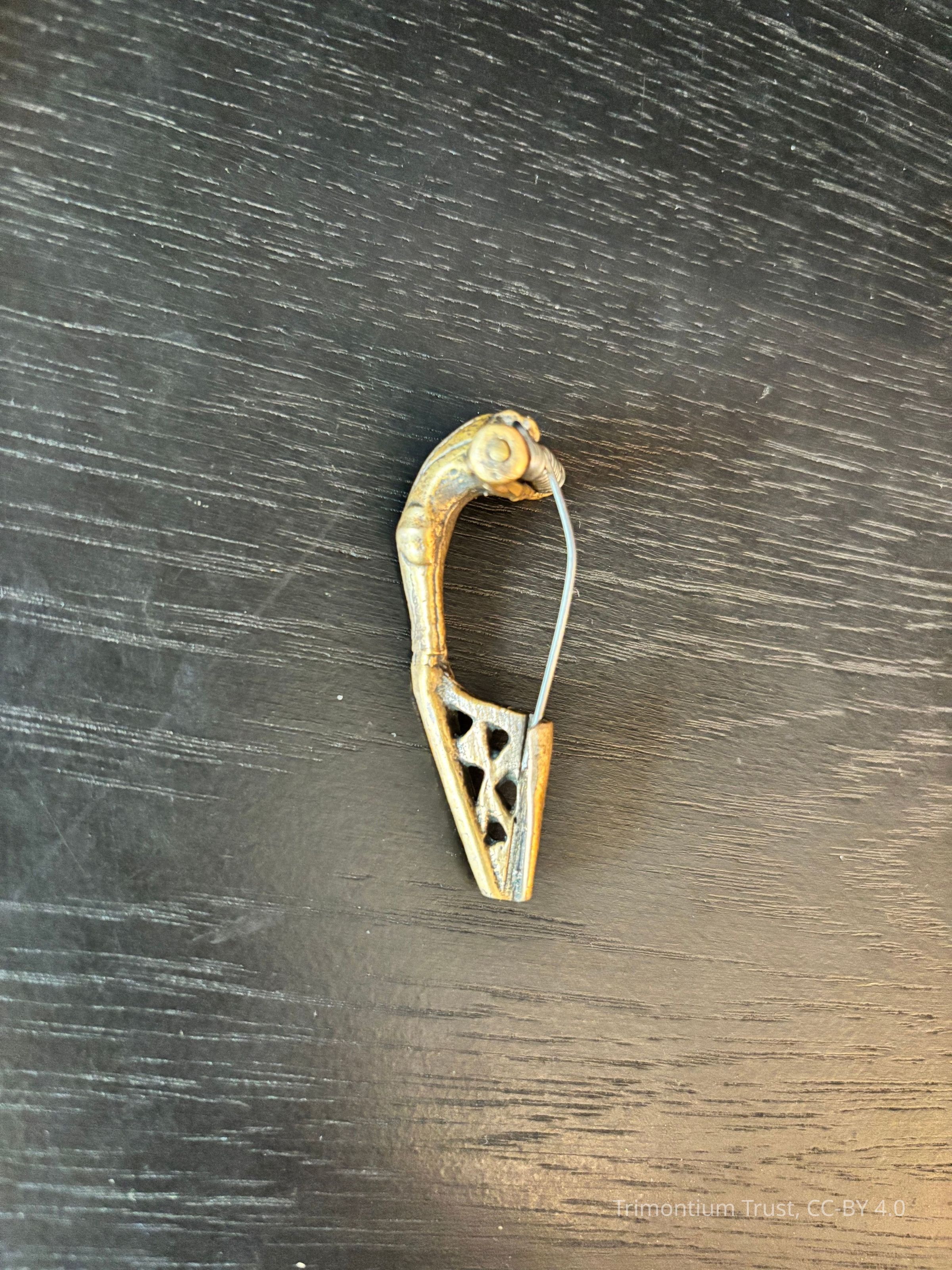 Bronze replica of a dolphin brooch.