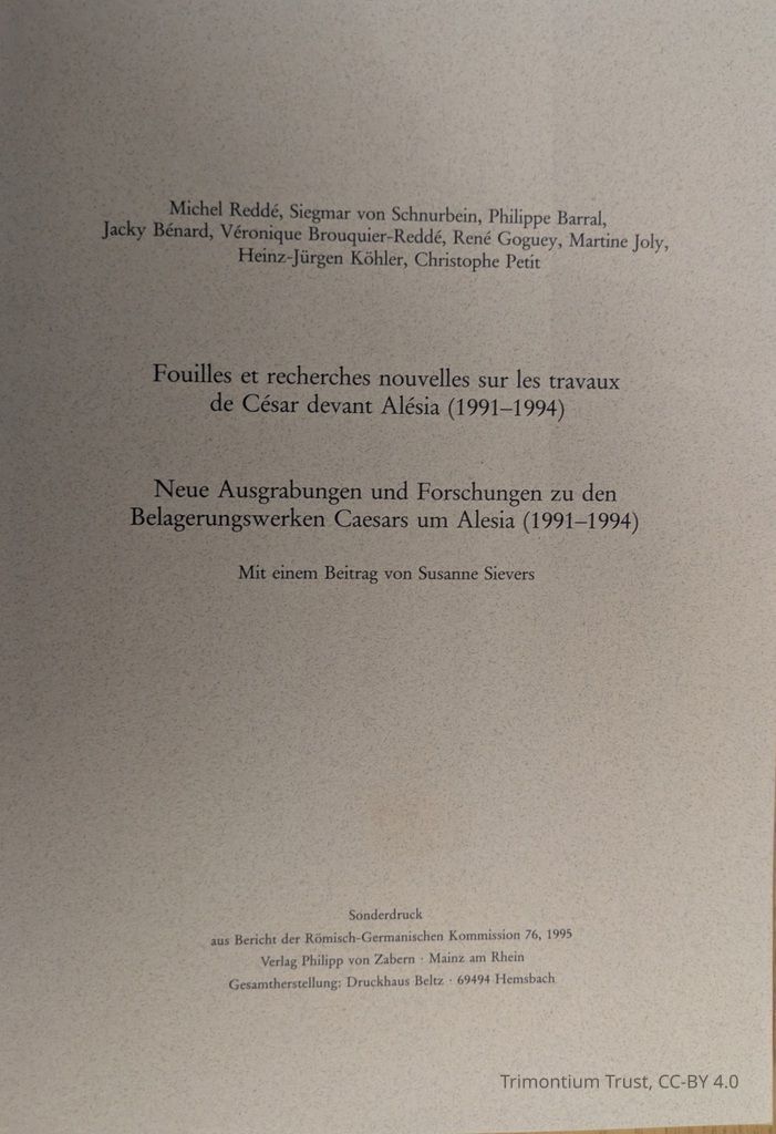 Michel Reddé, Siegmar von Schnurbein, Philippe Barral, Jack Bénard, Véronique Brouquier-Rédde, Réne Goguey, Martine Joly, Heinz-Jürgen Köhler, Christophe Petit, Susan SieversVolume/Number/Issue
