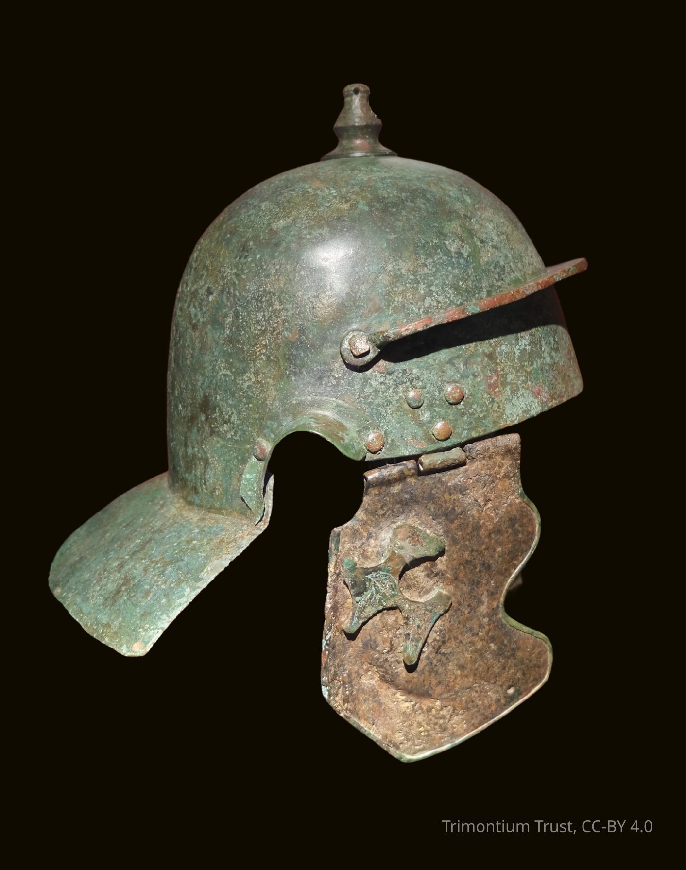 The presence of the Legionary Helmet along with the others found at Trimontium, was the first at the time to be found in Scotland, and looked similar to this helmet found in Germany. The inside of the helmet would have most likely had padding, similar to the decorated helmet.