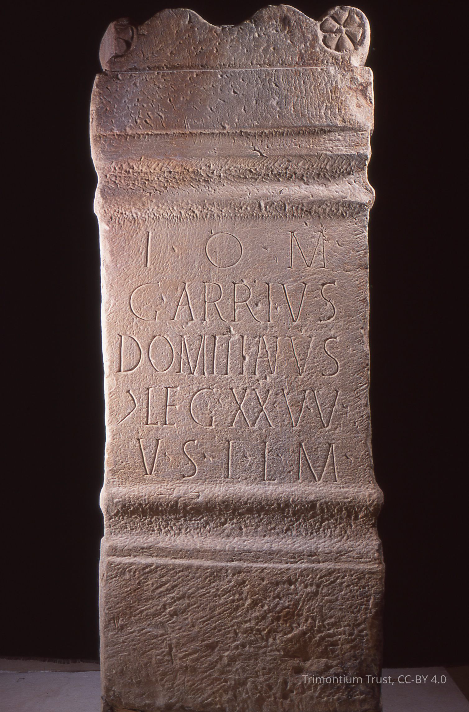To Jupiter, Best and Greatest, Gaius Arrius Domitianus, centurion of the 20th Legion Valeria Victrix, gladly, willingly, and deservedly fulfilled his vow.Material/Technique