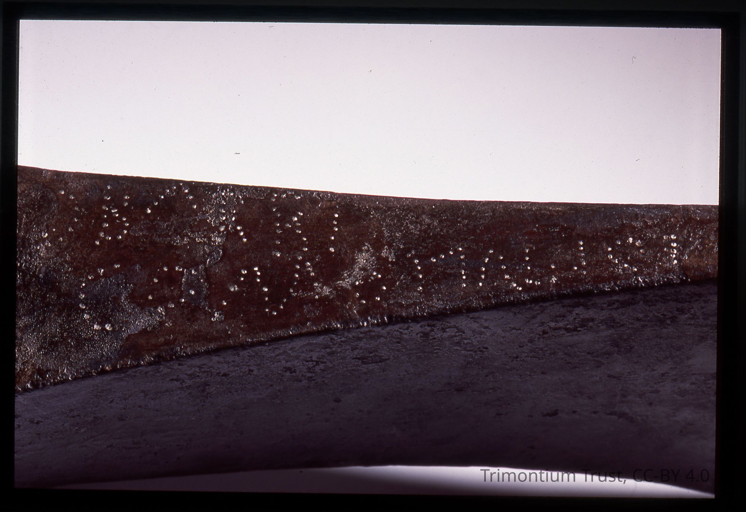 On the upper edge it bears a punched-dot inscription in two lines, the first consists of a centurial mark followed by 'BARRI'. The second line reads 'COMPITALICI'. 'BARRI COMPITALICI' can be translated as 'Property of Compitalicus in the century of Barrus'.Use
