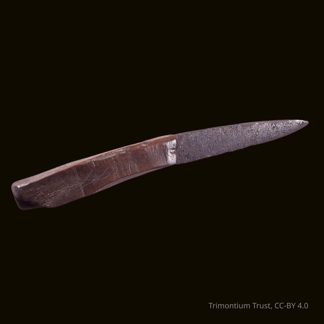 Filleting knife blade of iron with a bone handle, from the Roman site at Newstead (Trimontium), Roxburghshire, 140 - 180 AD